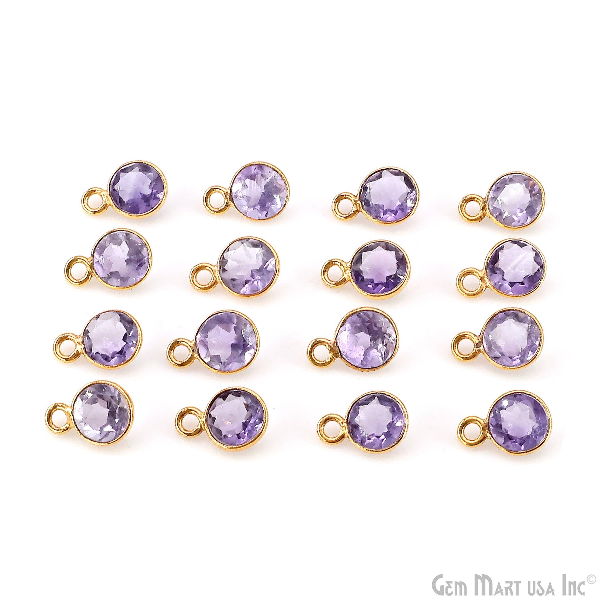 Round 6mm Brilliant Cut Gold Plated Bezel Single Bail Gemstone Connector