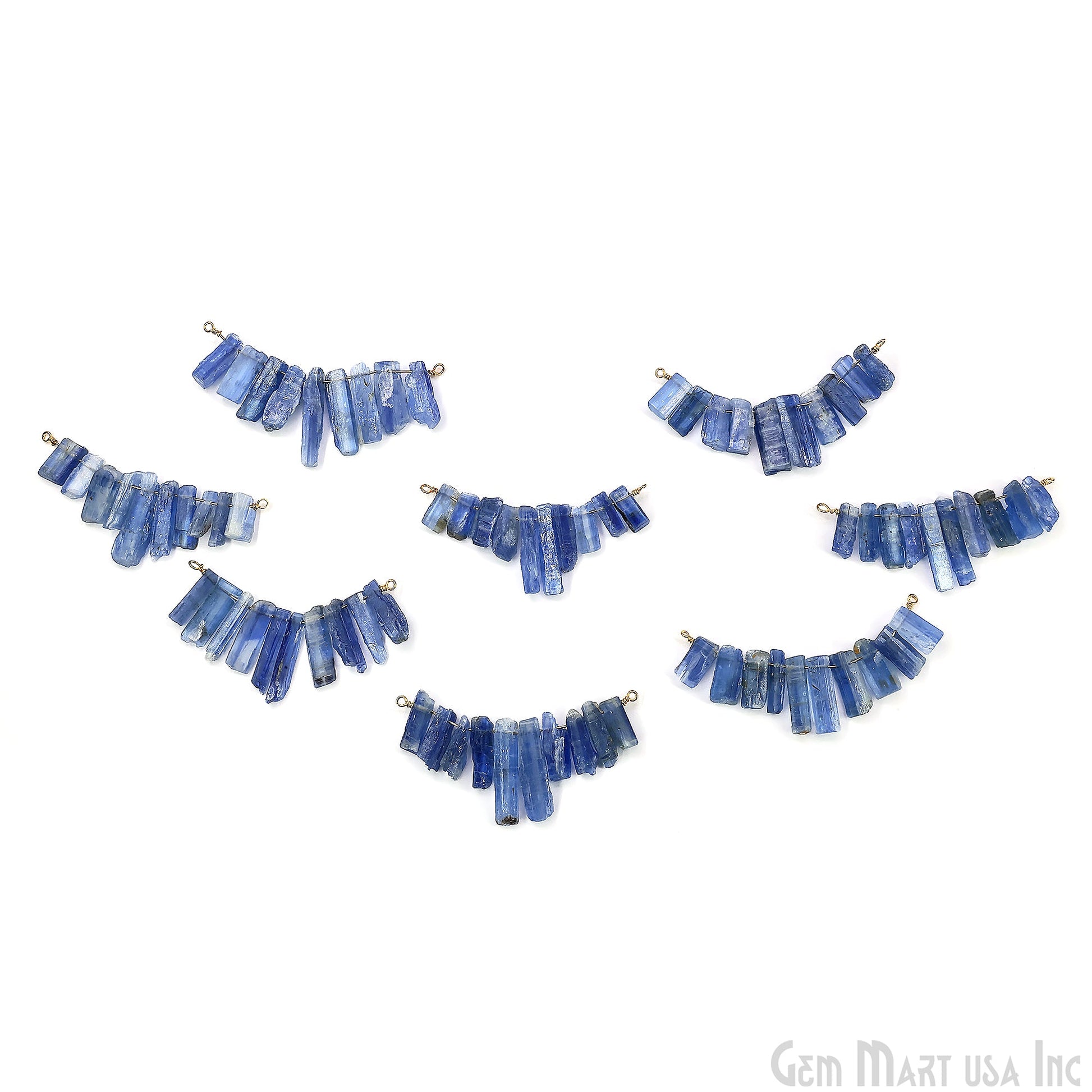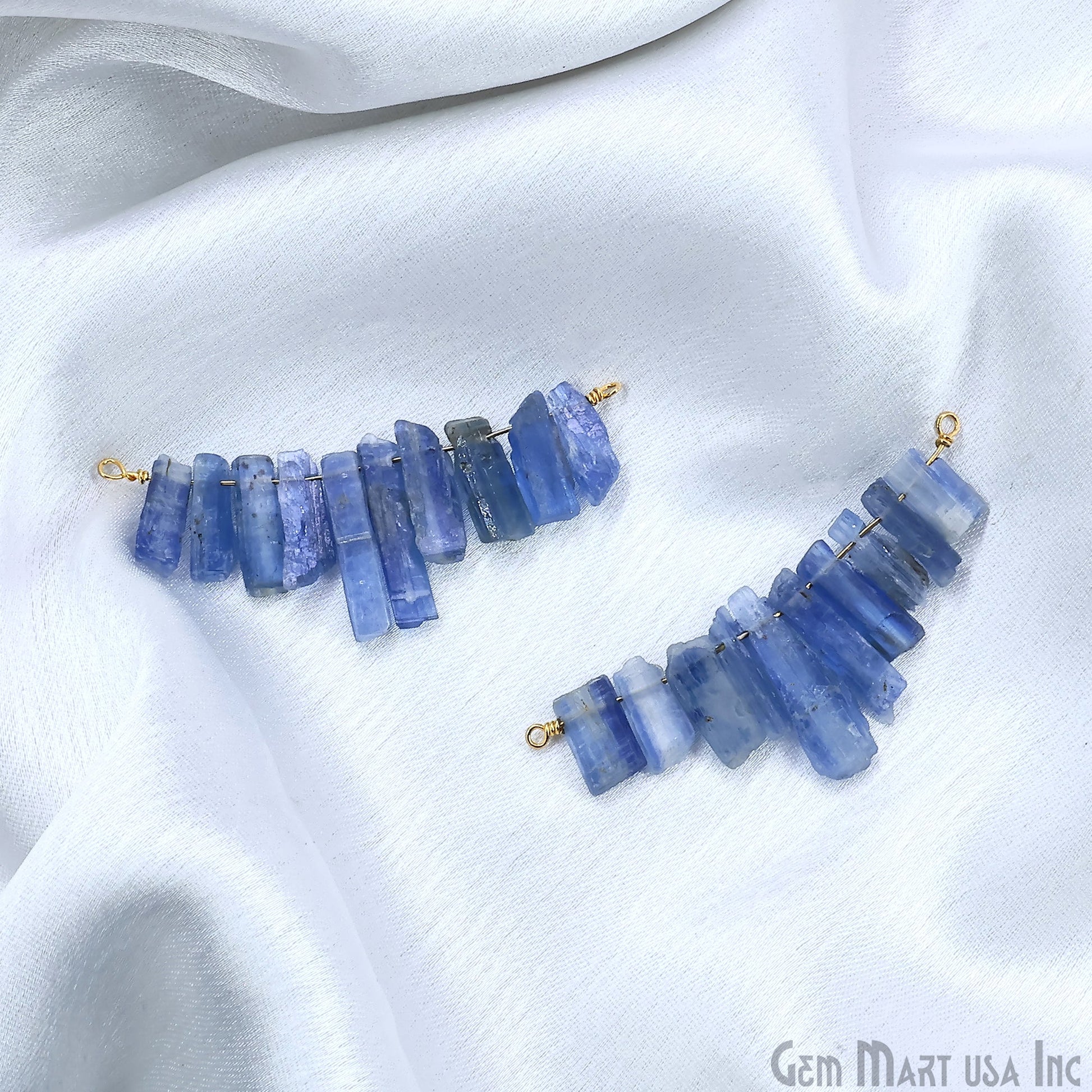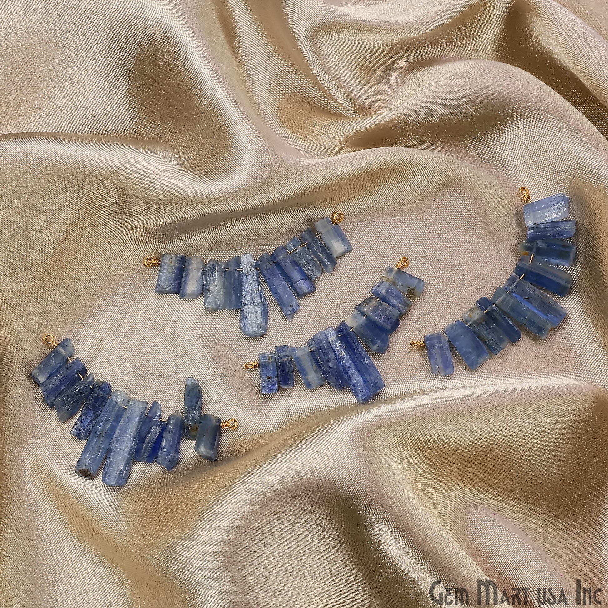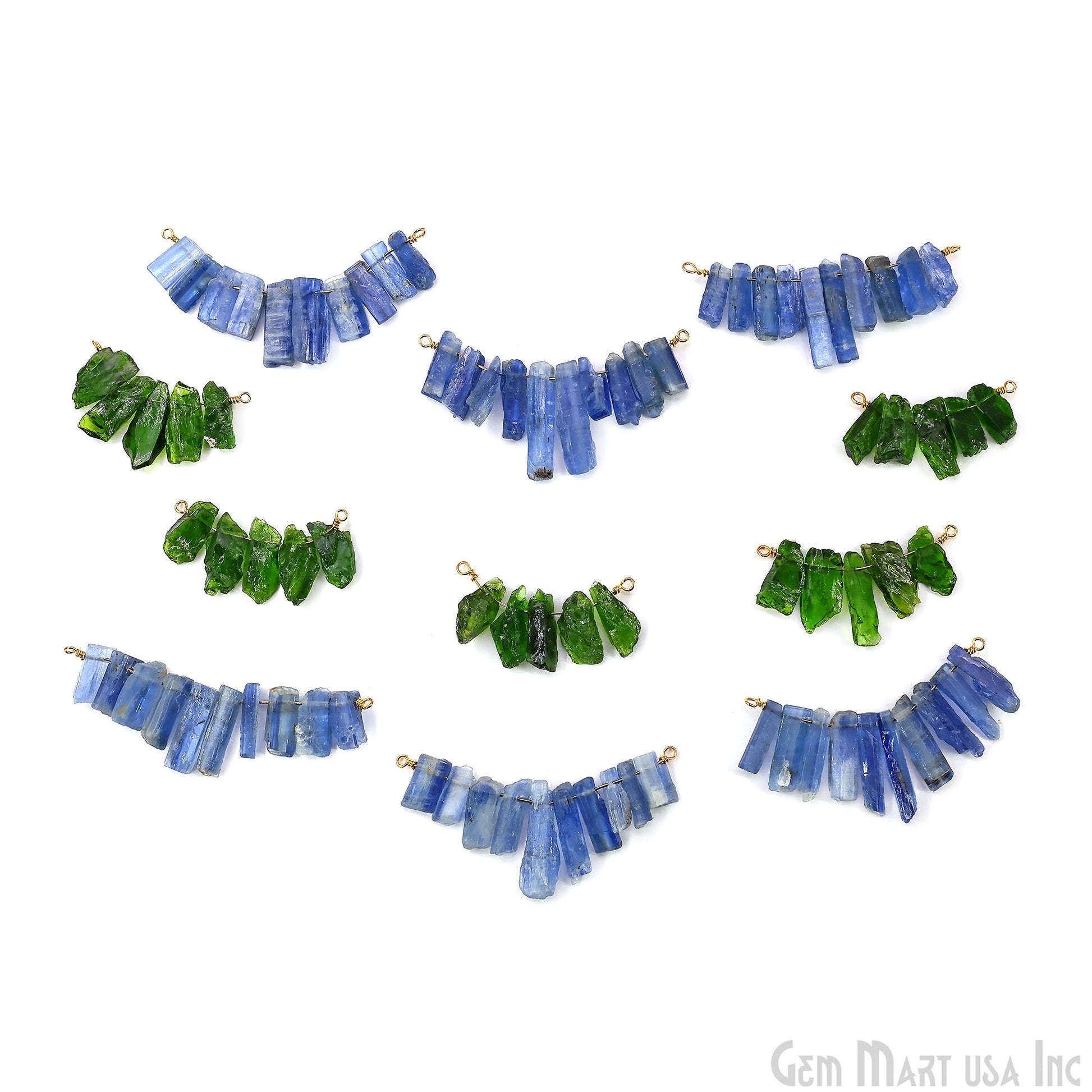 Uncut Gemstone Beads Bar Gold Plated Wire Wrapped Pendant 27x13mm