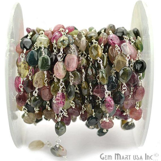 Tourmaline Beads Chain, Silver P...