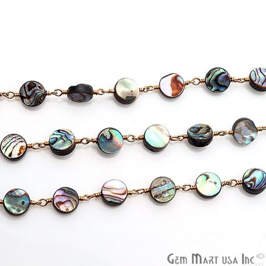 Abalone 8mm Round Gold Bezel Lin...