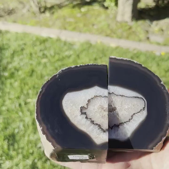 Black Agate Bookend Pair, Natural Geode Bookend, Unique Crystal Bookend Set, Home Decor, Free Shipping