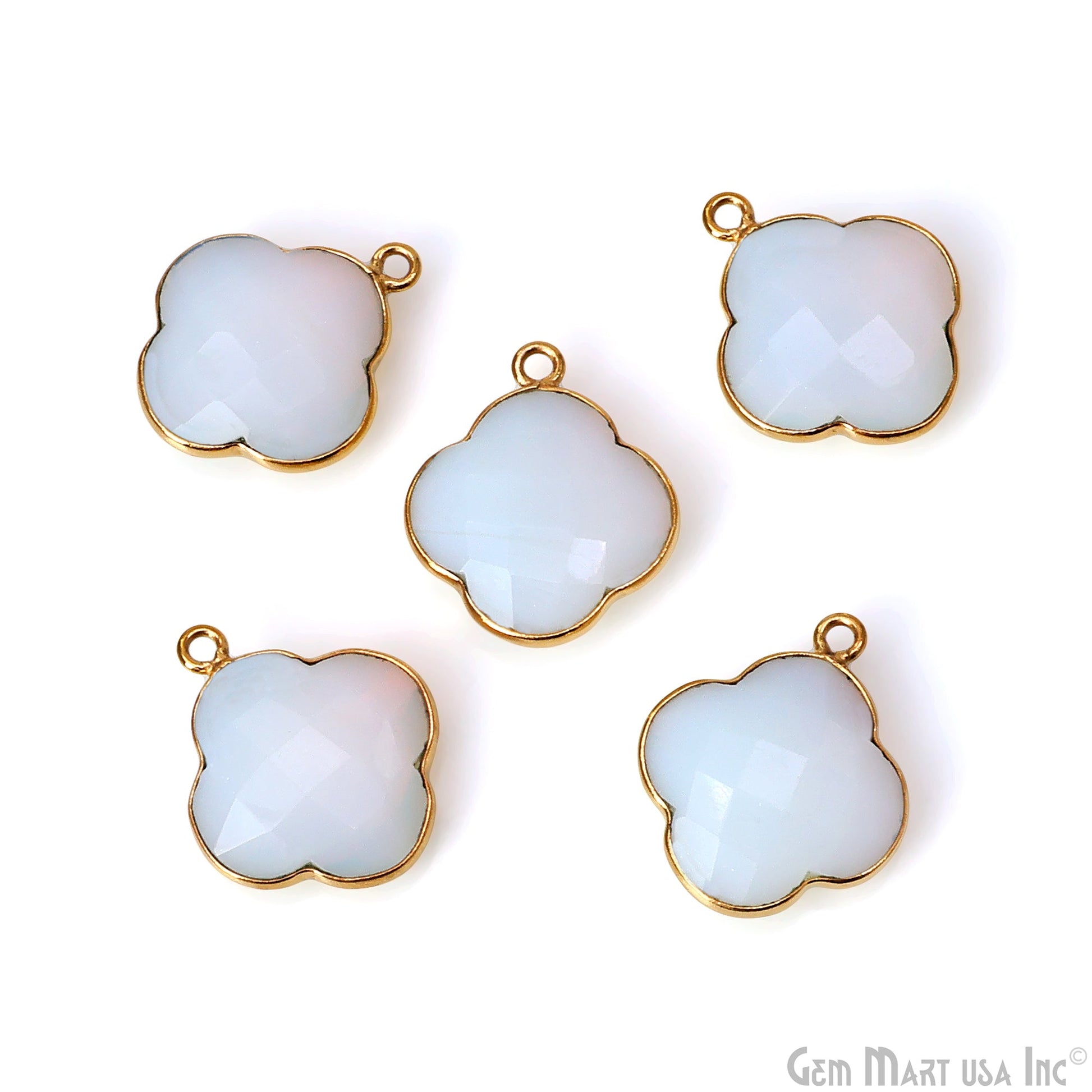 Clover 16x19mm Gemstone Single Bail Gold Bezel Connector