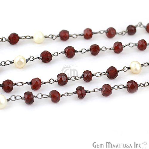 Garnet With Pearl 4mm Oxidized W...