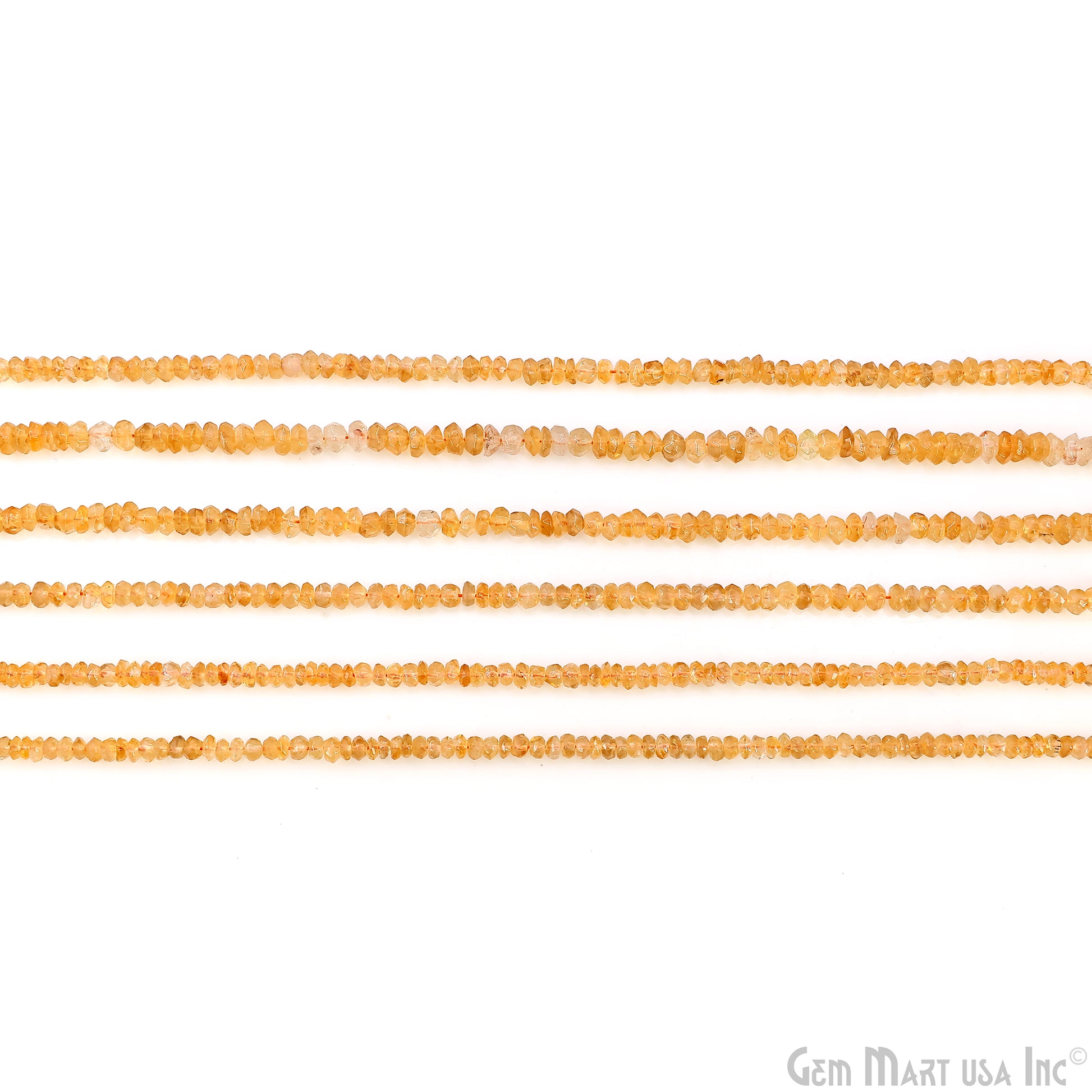 Citrine Faceted Round Drilled Beads 2-4mm Waist Beads, Rondelle Bead Strand 13 Inch
