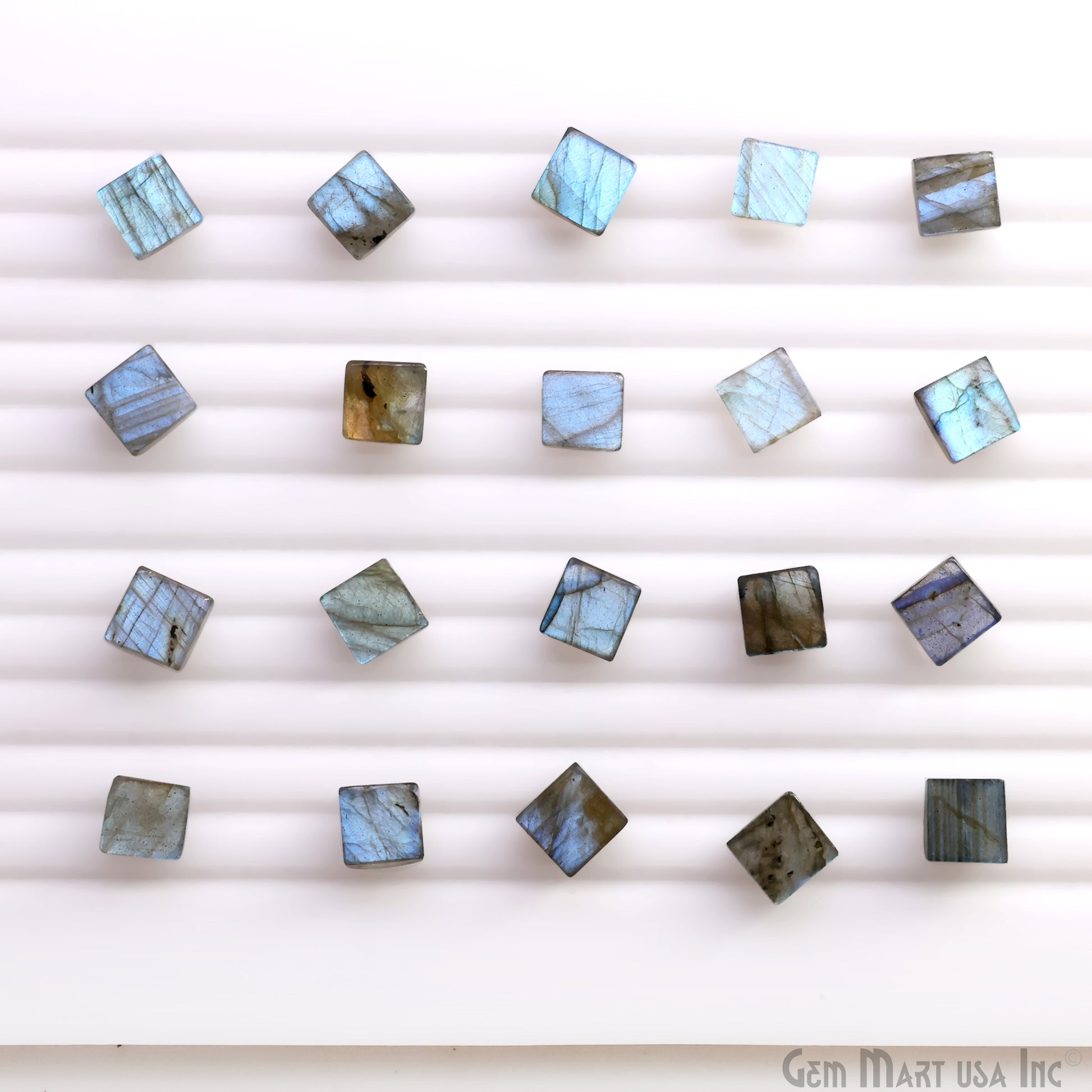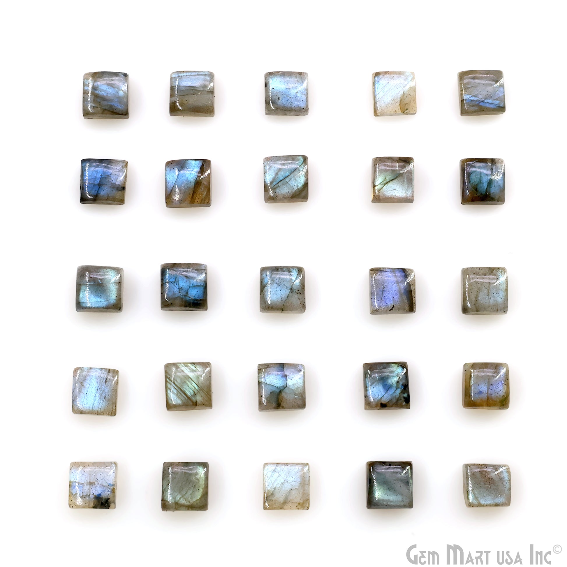Labradorite Wholesale Gemstones, 100% Natural Semi-Precious Gems, Blue Flash Cabochon Loose Gems, 8mm, Square, 4PC Lot