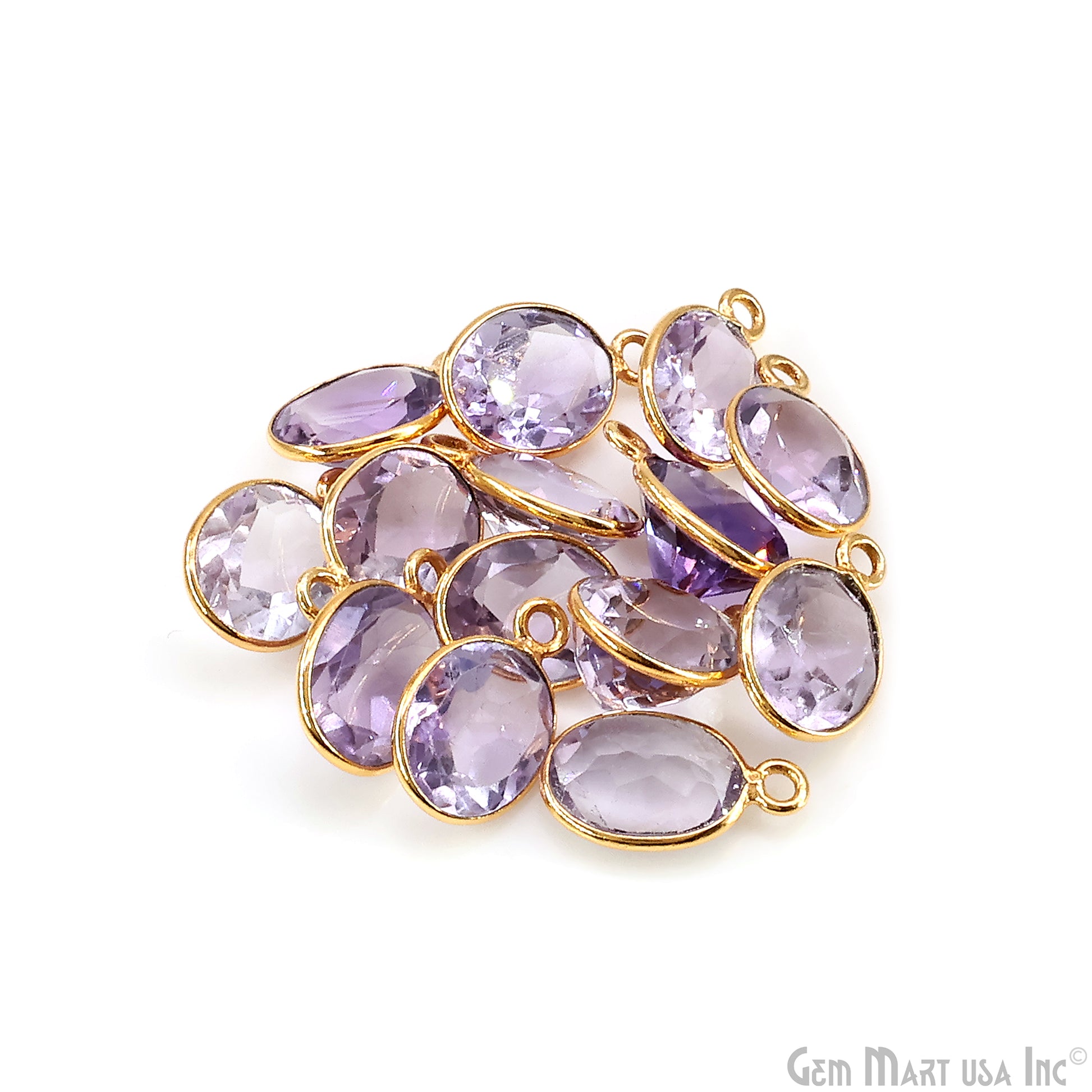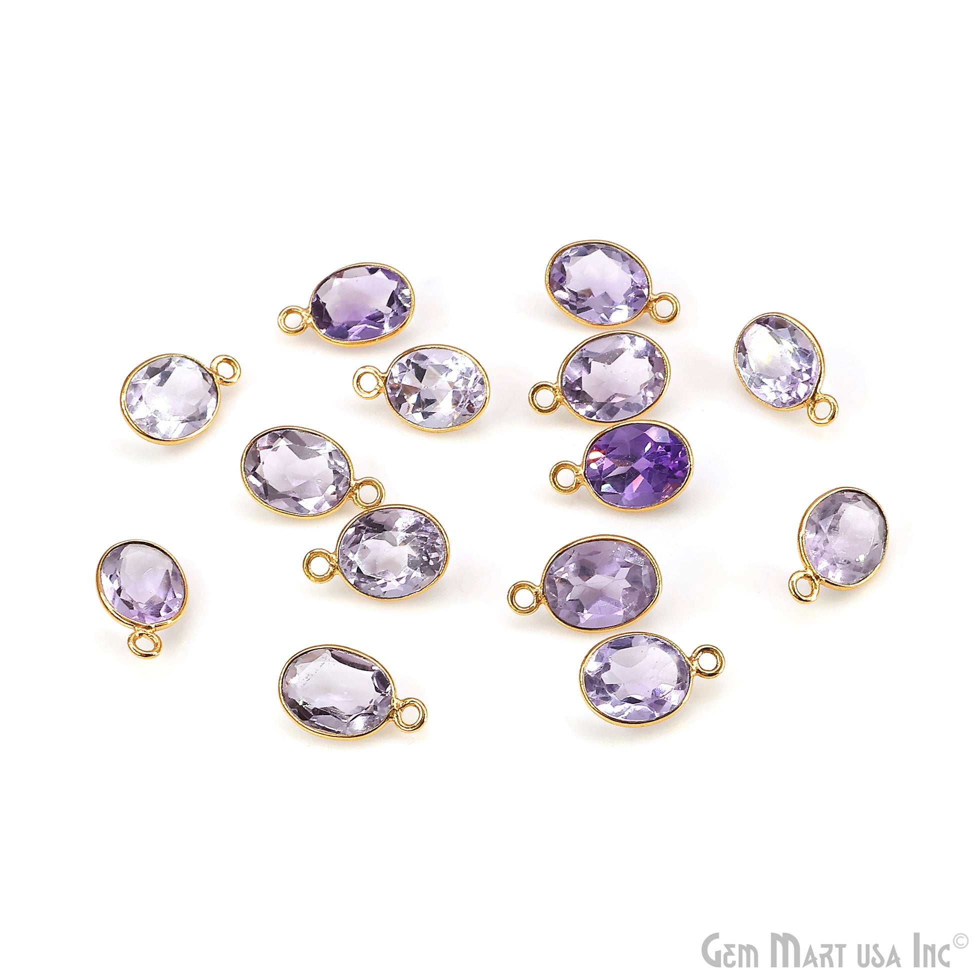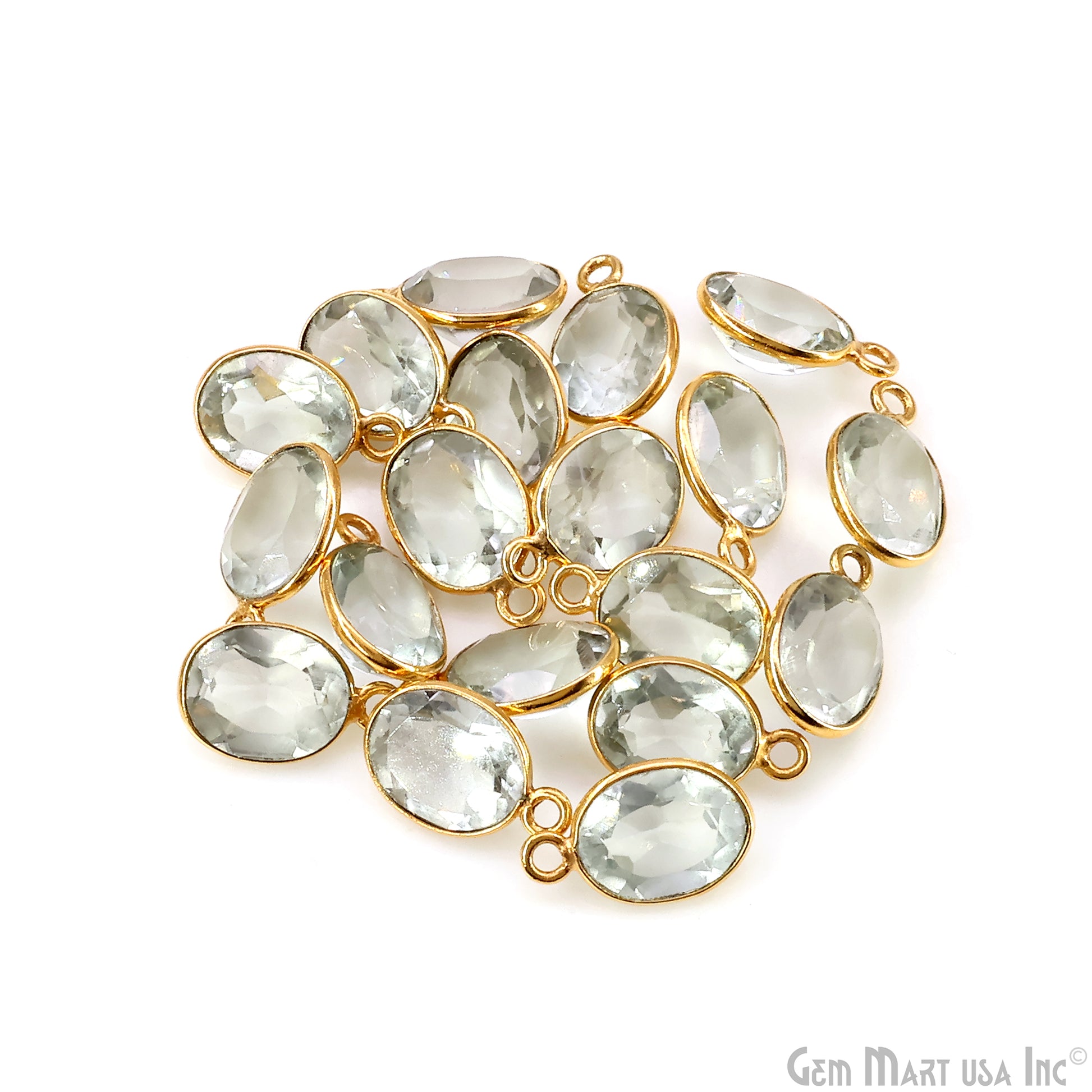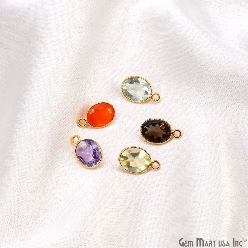 Oval 8x10mm Brilliant Cut Gold Plated Bezel Single Bail Connector