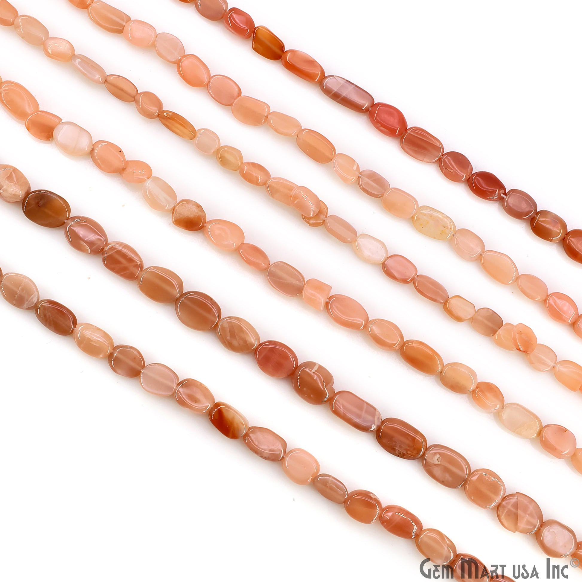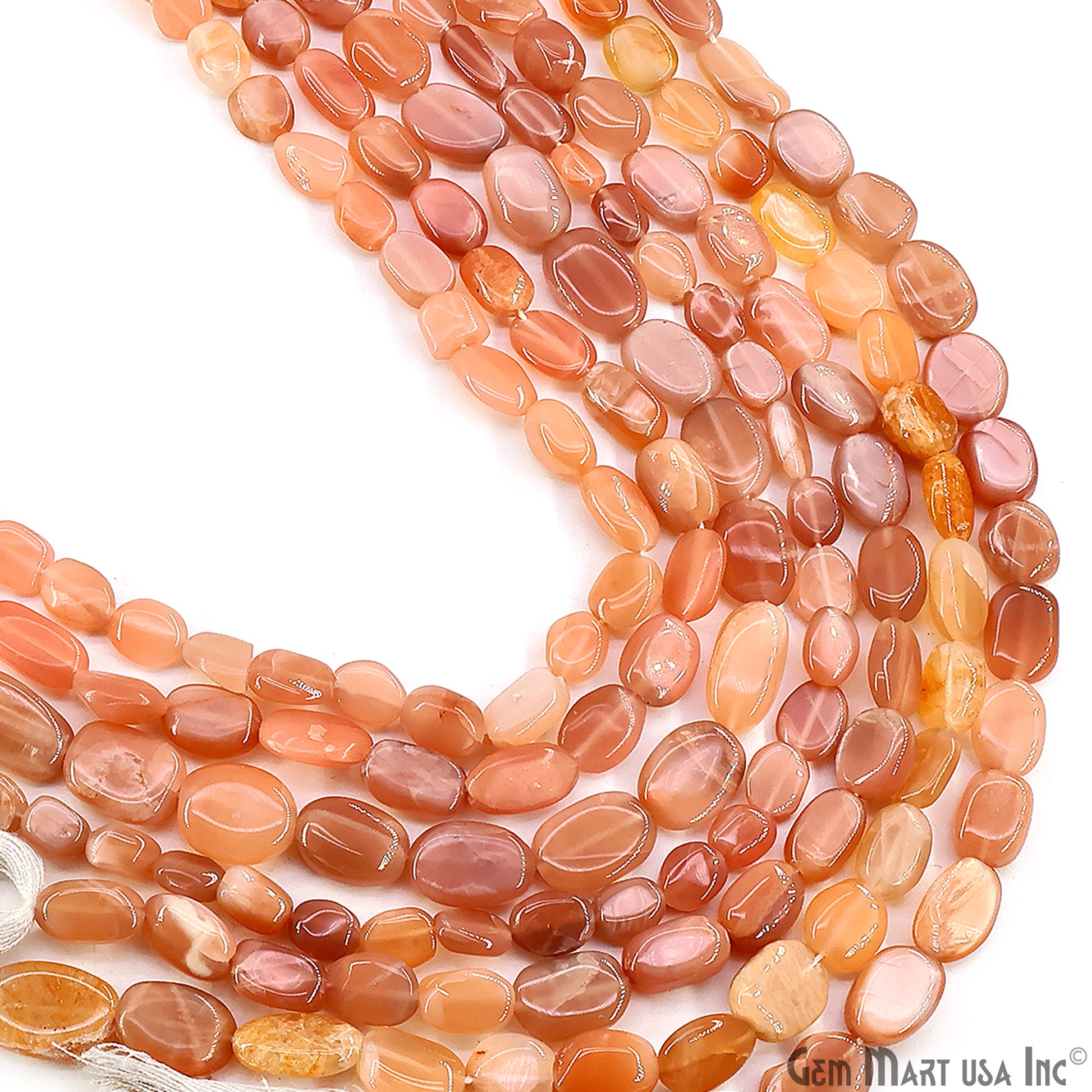 Peach Moonstone Tumble Beads Free Form Drilled Beads 9-13X6-7mm Waist Beads, Rondelle Bead Strand 13 Inch