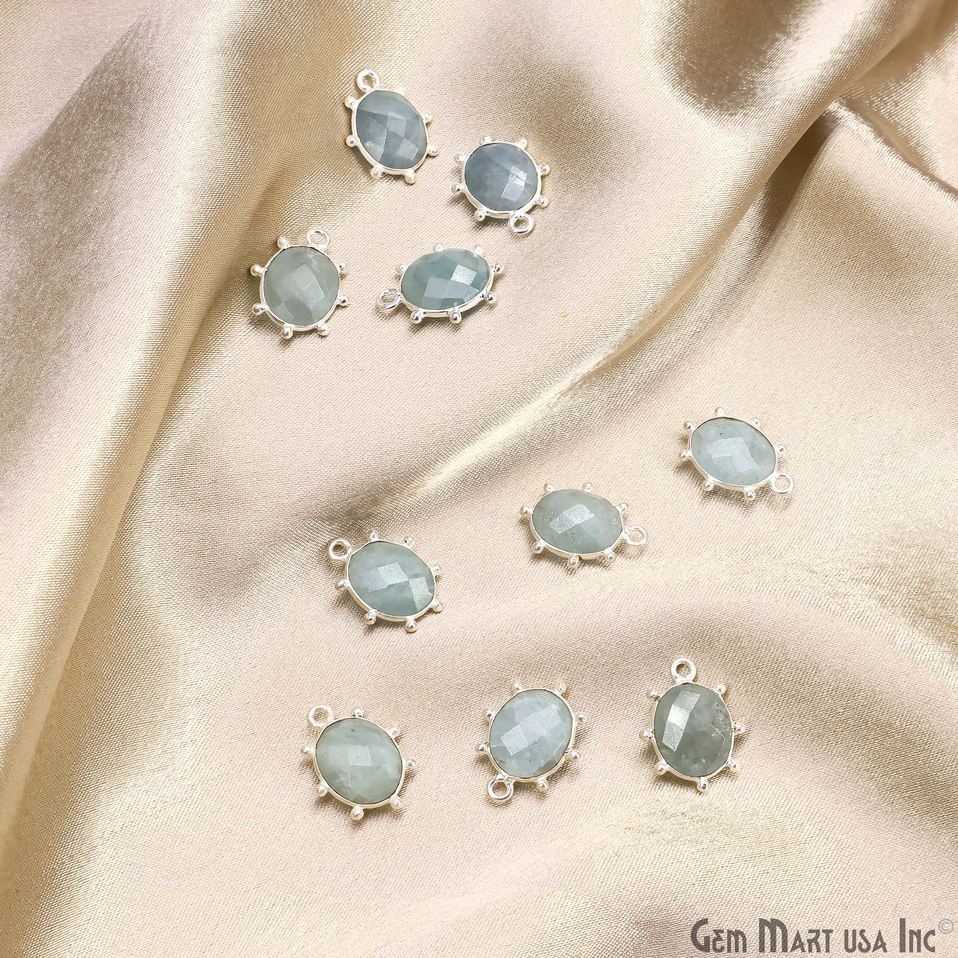Aquamarine Oval 17x13mm Design Bezel Silver Plated Single Bail Gemstone Connector