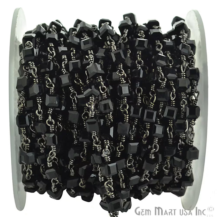 Black Spinel 4mm Black Plated Wire Wrapped Beads Rosary Chain