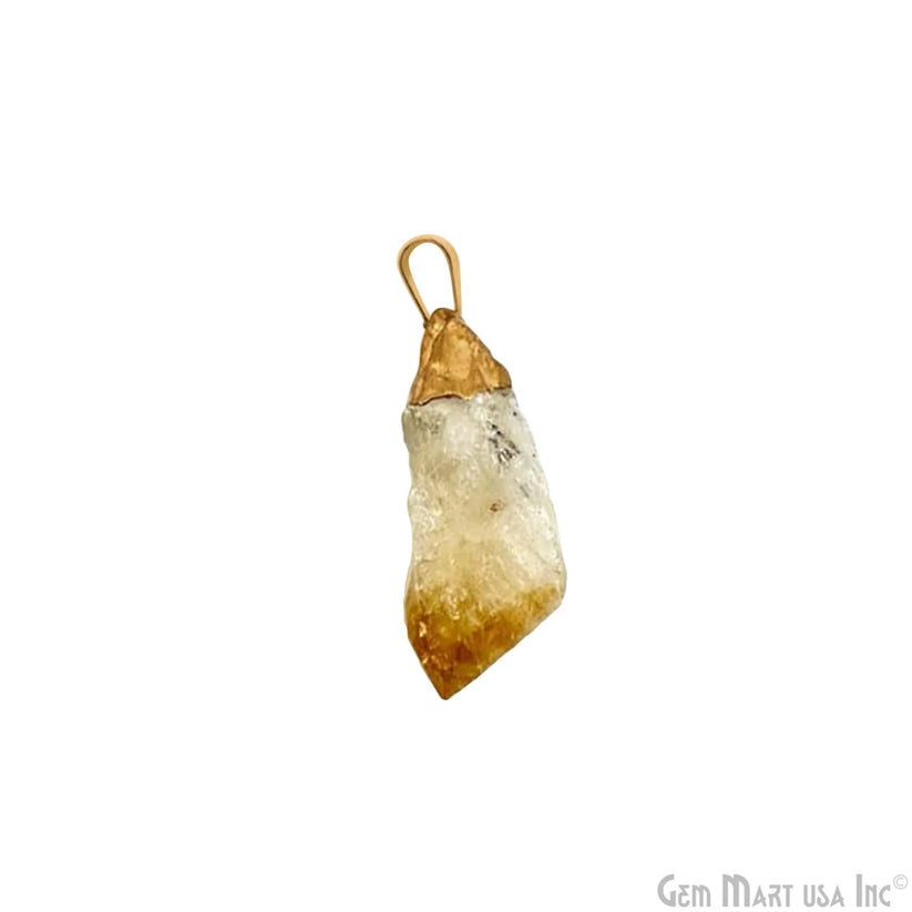 Citrine Free Form 25x12mm Gold Electroplated Single Bail Rough Gemstone Pendant