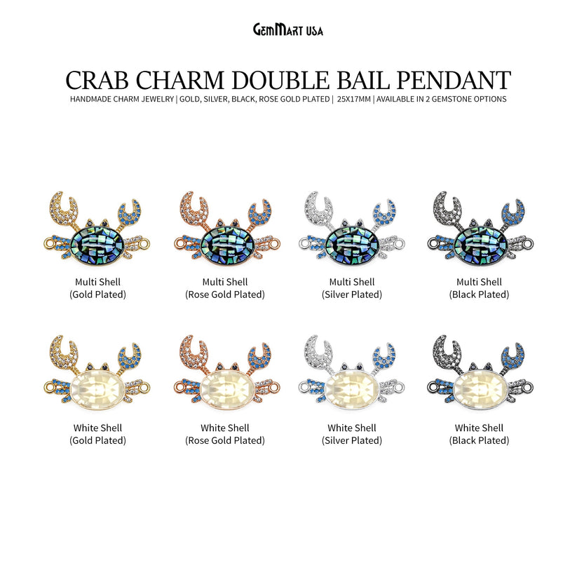 Crab Charm Pendant crab jewelry Cubic Zircon 25x17mm Pendant Charm Jewelry GemMartUSA