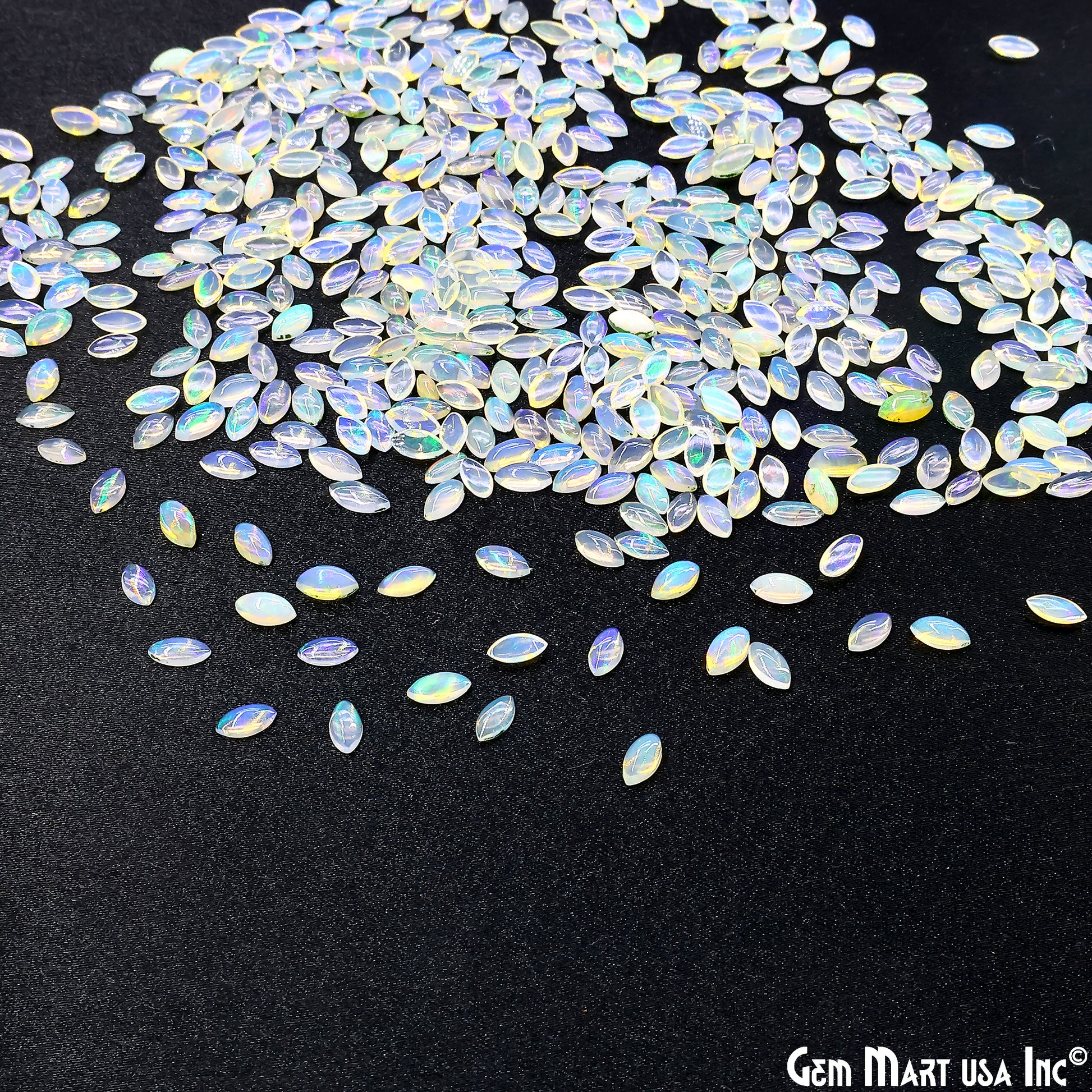 Ethiopian Opal Wholesale Gemstones, 100% Natural Precious Gems, Rainbow Cabochons Loose Gems, 3x6mm, Marquise, 10PC