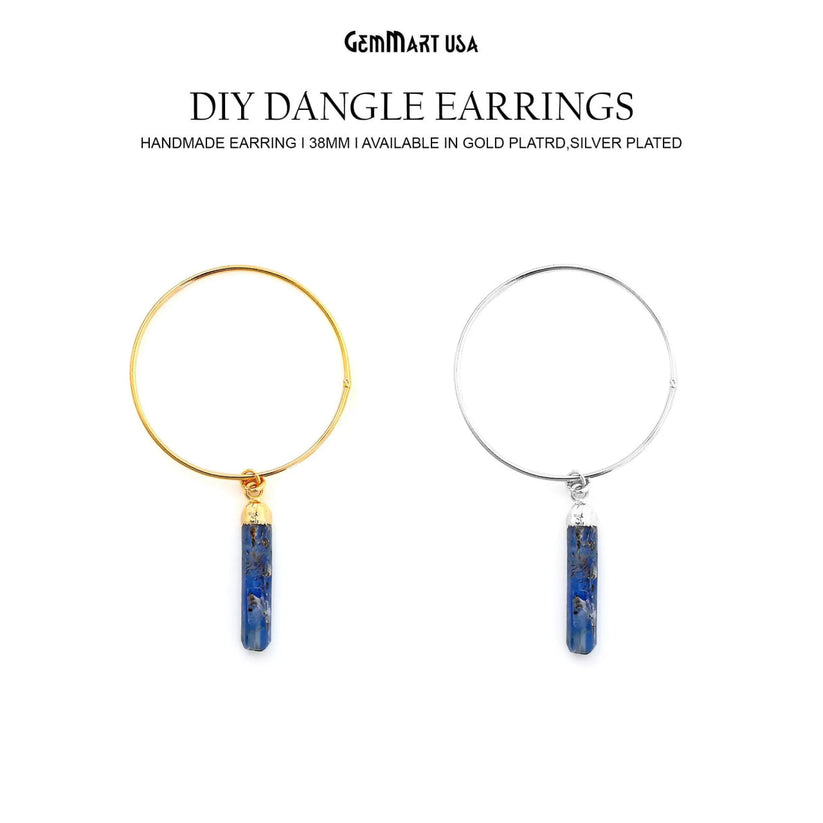 Kyanite Blue Hoop Earrings, 38mm Boho Crystal Dangle Jewelry for Women, Handmade Natural Gemstone Statement Earrings, Rough Stone,