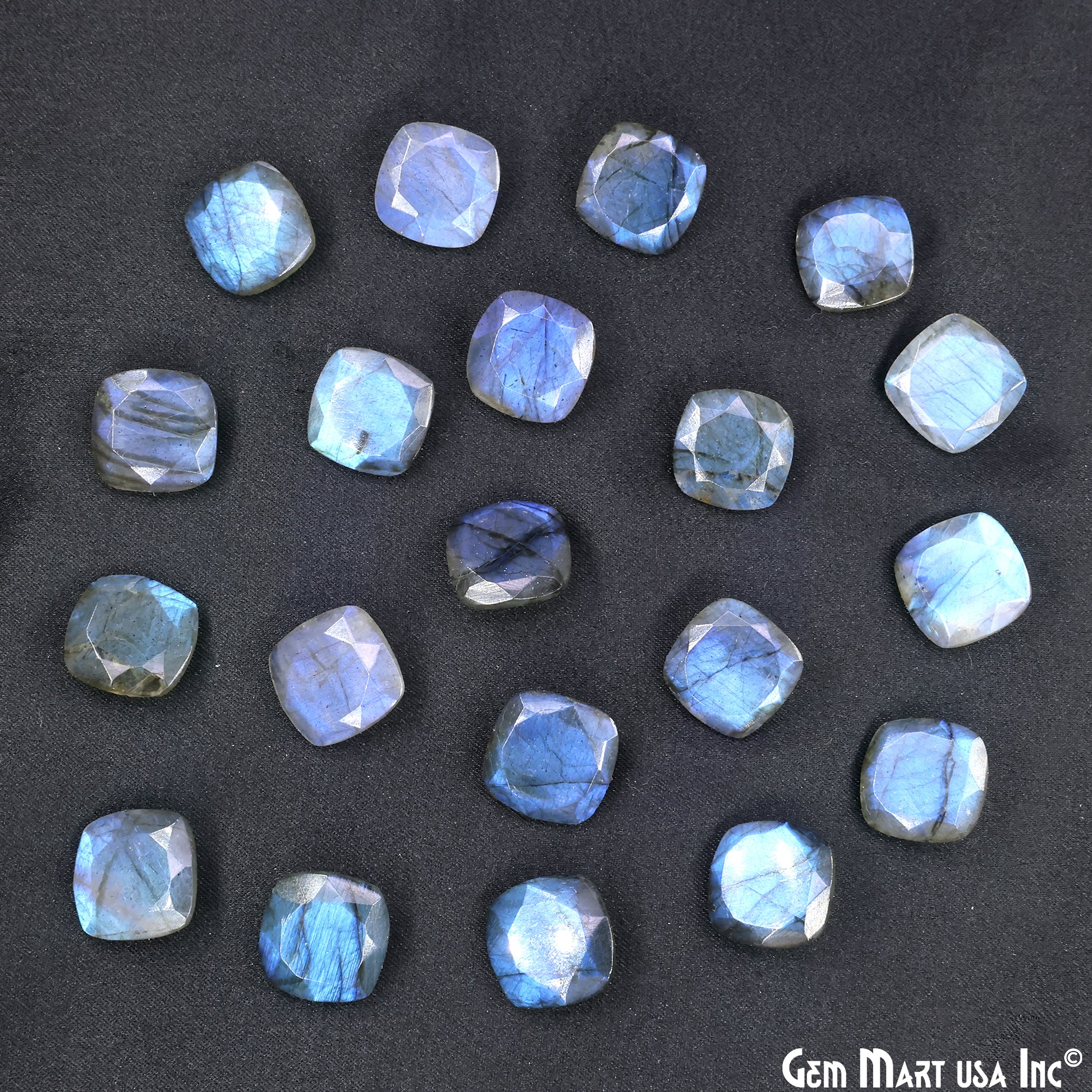 Labradorite Wholesale Gemstones, 100% Natural Semi-Precious Gems, Blue Flash Faceted Loose Gems, 14mm, Cushion, 2PC Lot