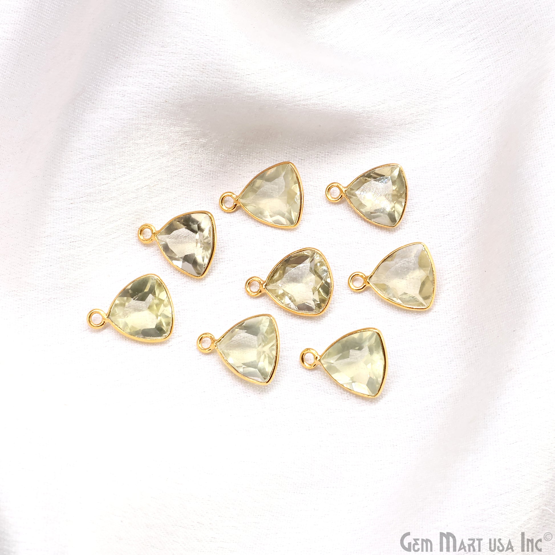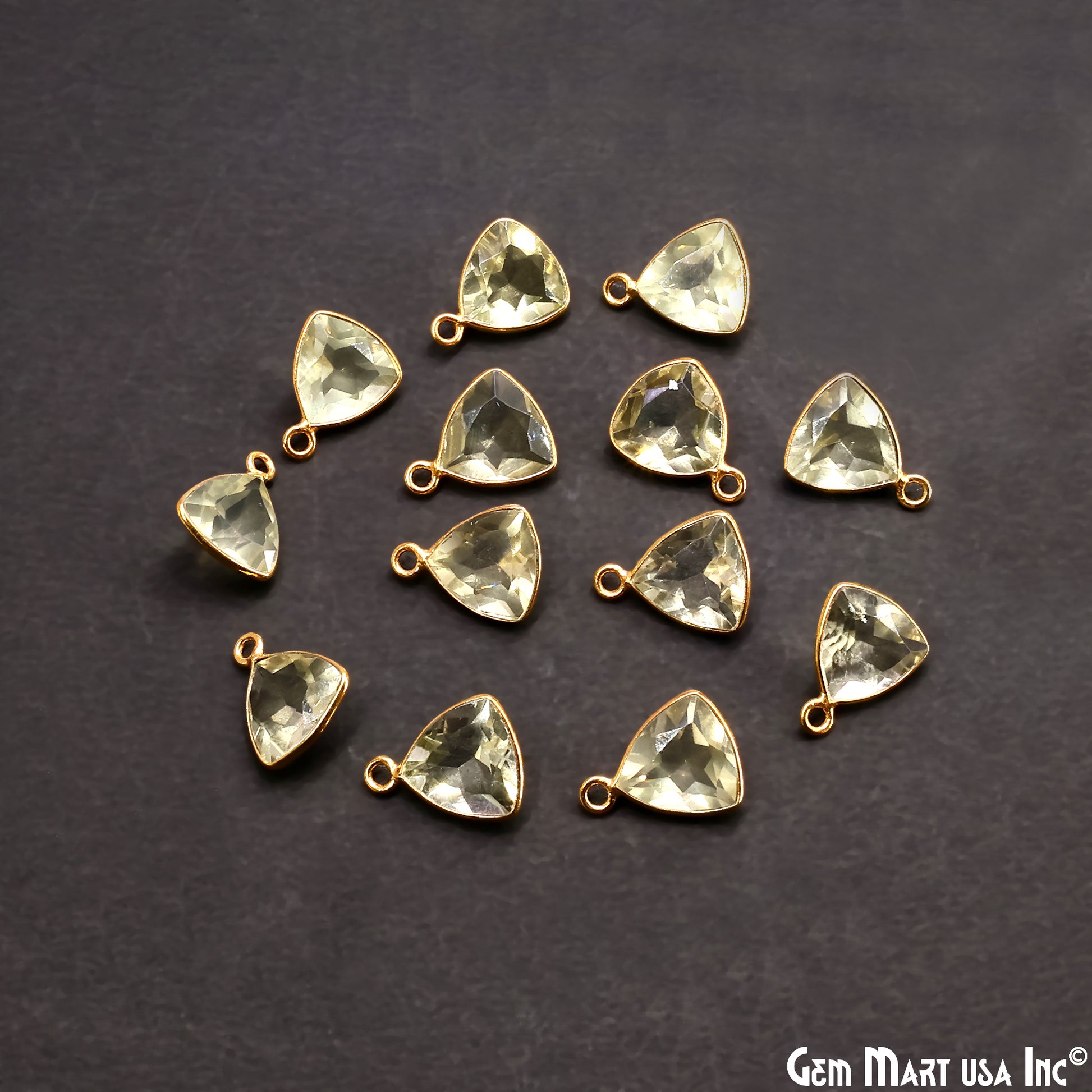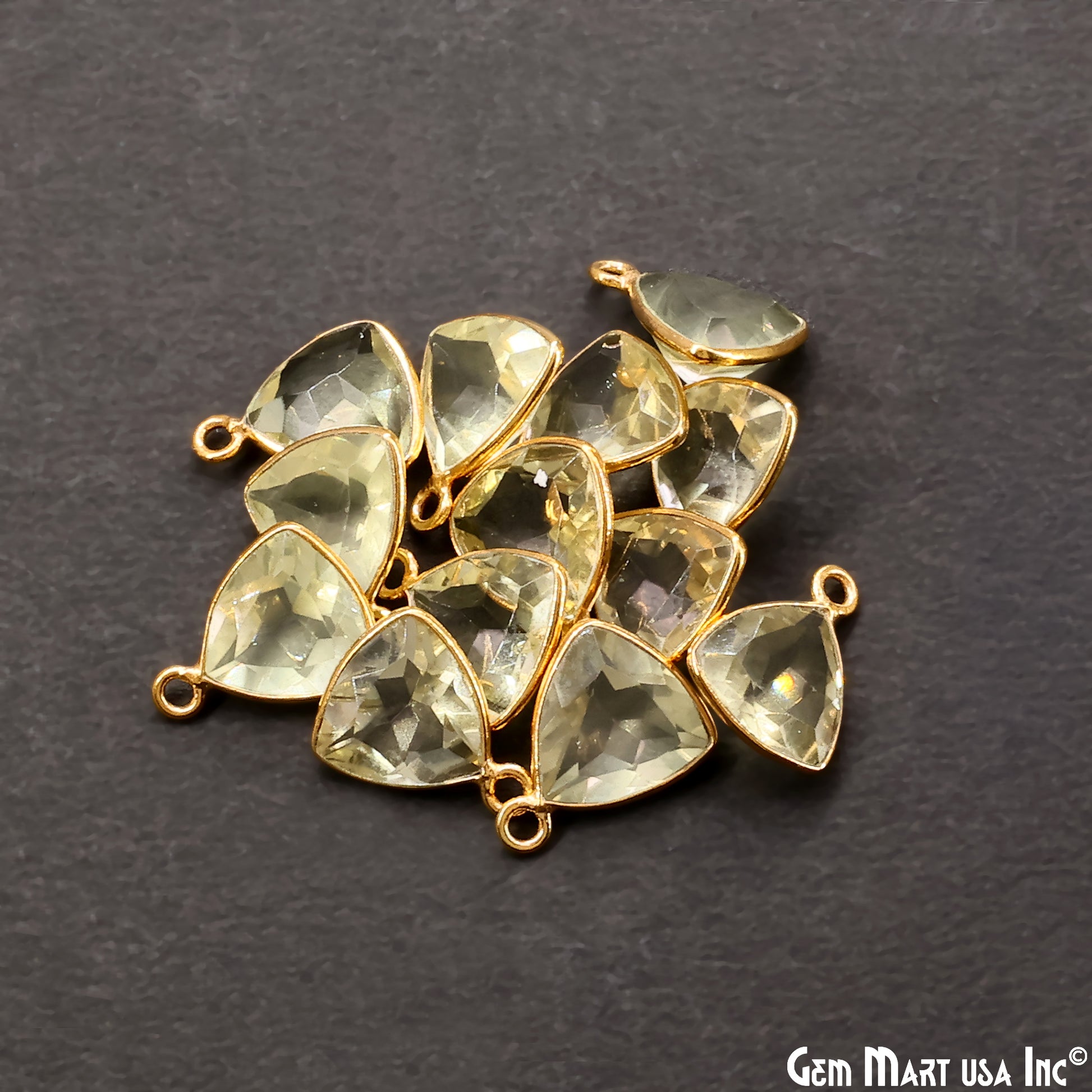 Lemon Topaz Trillion 10mm Brilliant Cut Gold Plated Bezel Single Bail Gemstone Connector