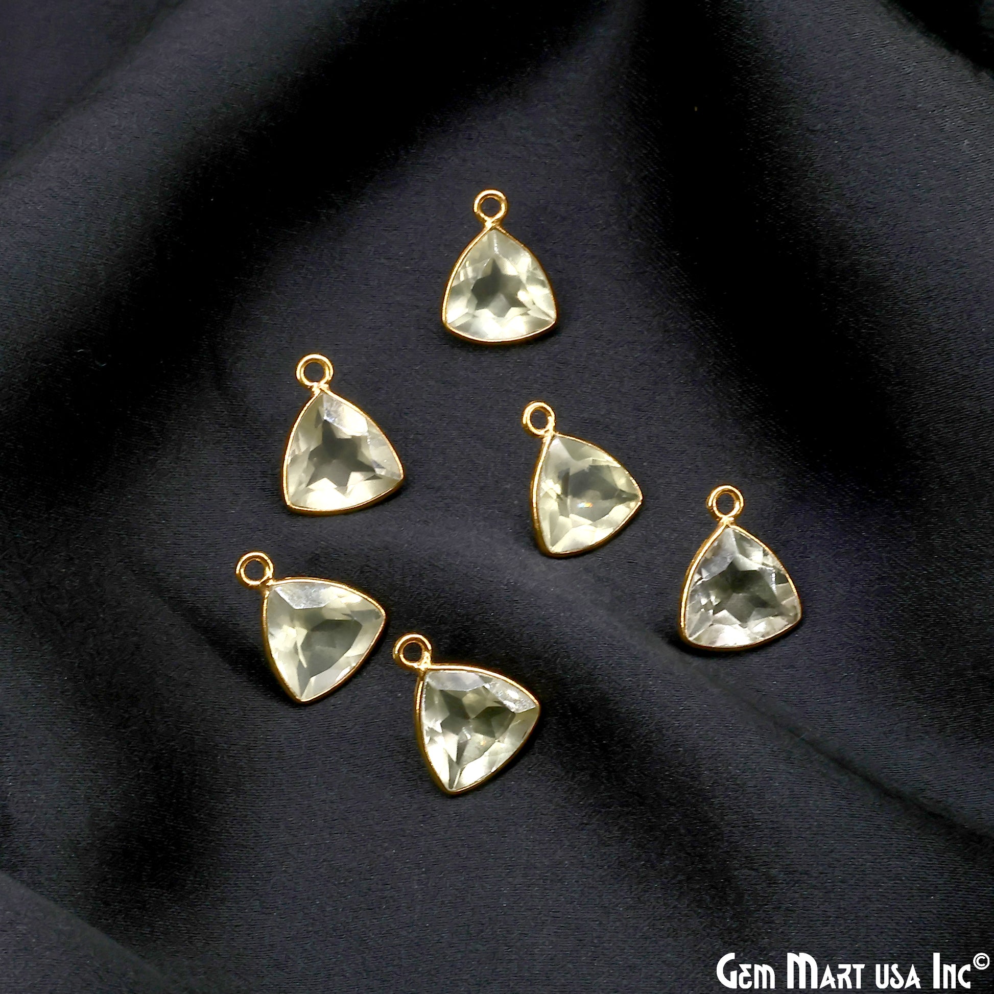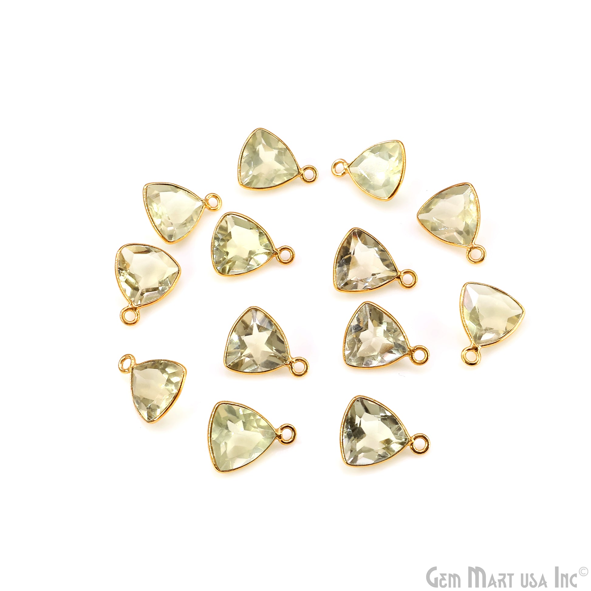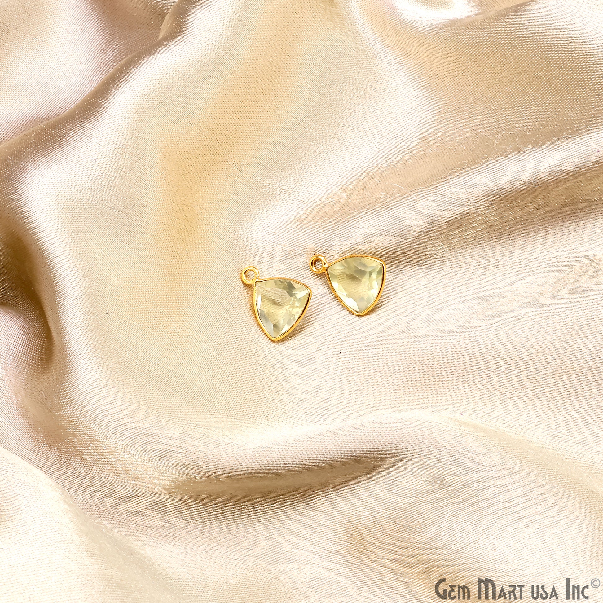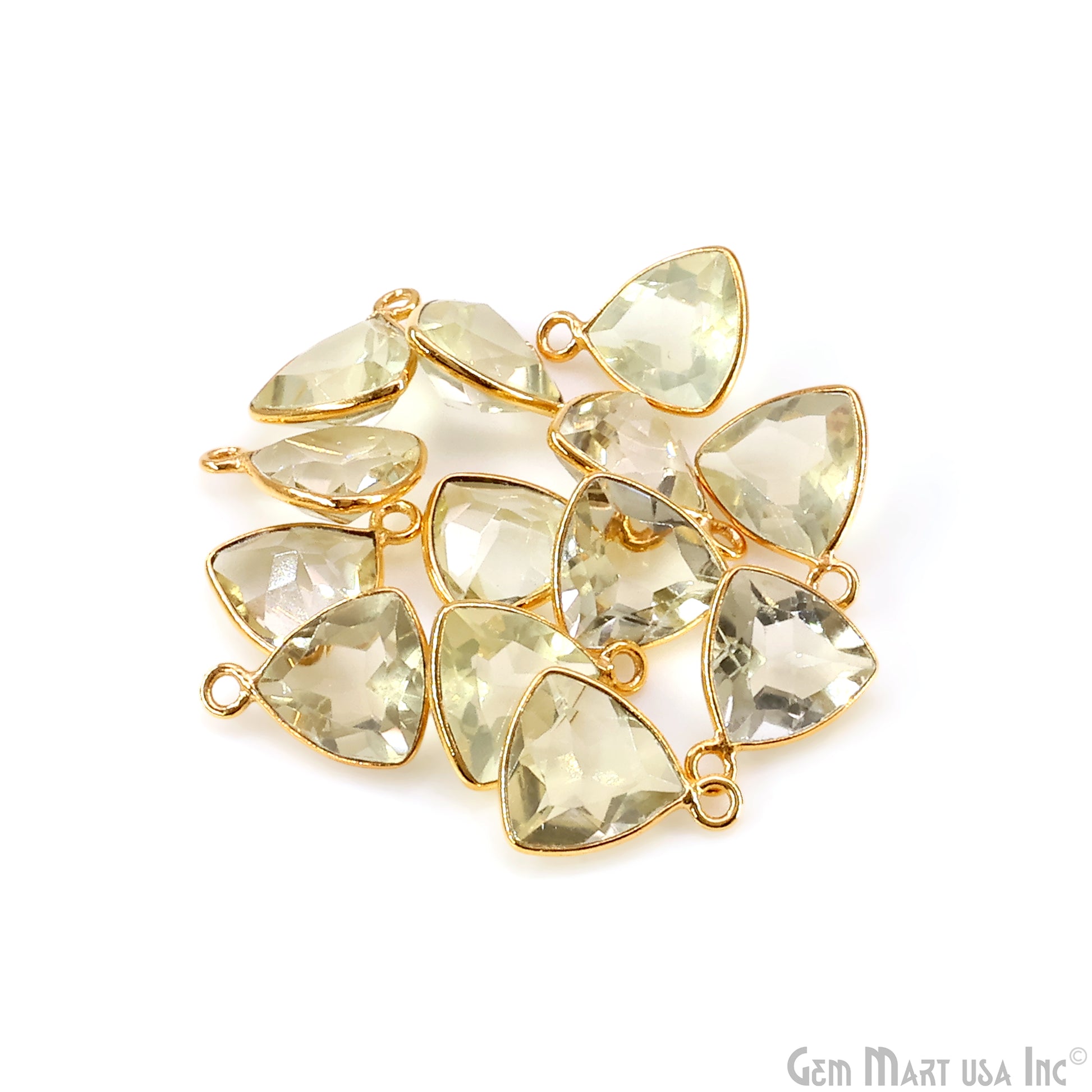 Lemon Topaz Trillion 10mm Brilliant Cut Gold Plated Bezel Single Bail Gemstone Connector