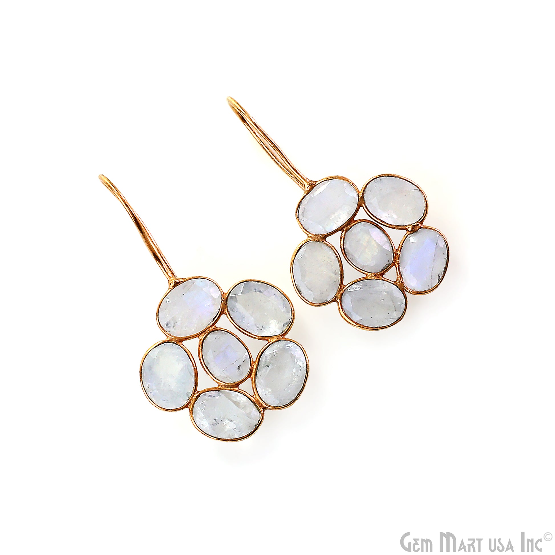 Add a touch of celestial elegance to your look with these handcrafted Rainbow Moonstone Drop Earrings. Featuring a stunning cluster of natural oval moonstone cabochons, these earrings radiate a soft iridescent glow with flashes of blue, purple, and silver – a timeless choice for both everyday wear and special occasions.