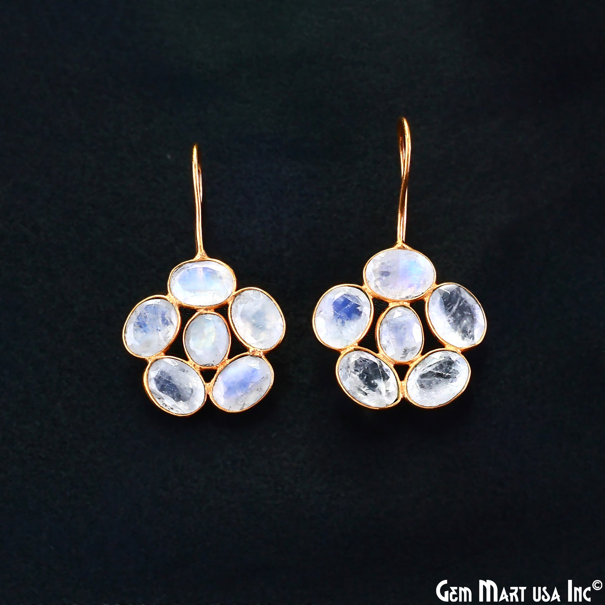 Rainbow Moonstone Drop Earrings 35x21mm Oval Cluster, Gold Plated Dangle Jewelry