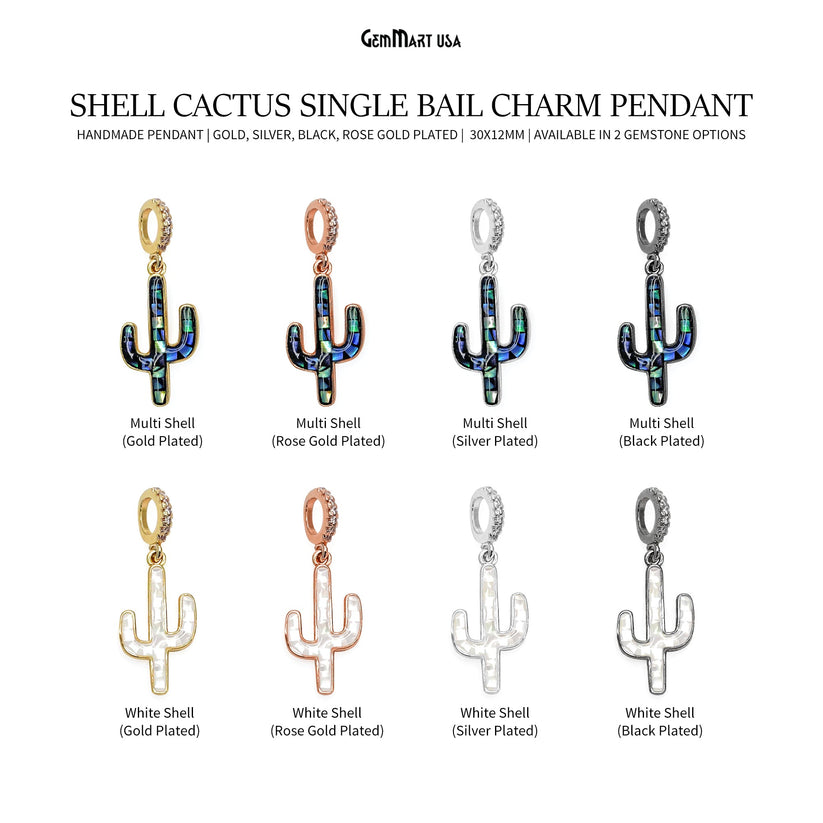 Shell Cactus Charm Pendant 30x12mm Single Bail Bracelet Charm Jewelry GemMartUSA