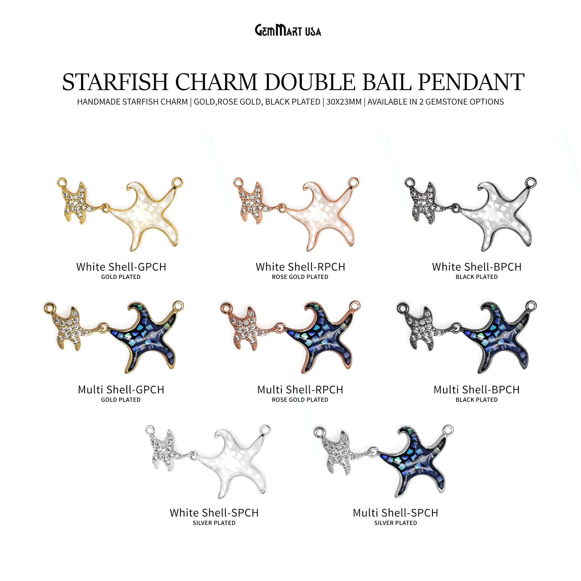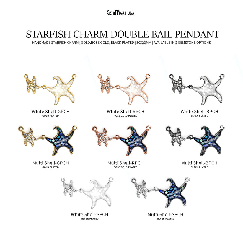 Starfish Charm Pendant Cubic Zircon 30x23mm Double Bail Bracelet Charm Jewelry GemMartUSA