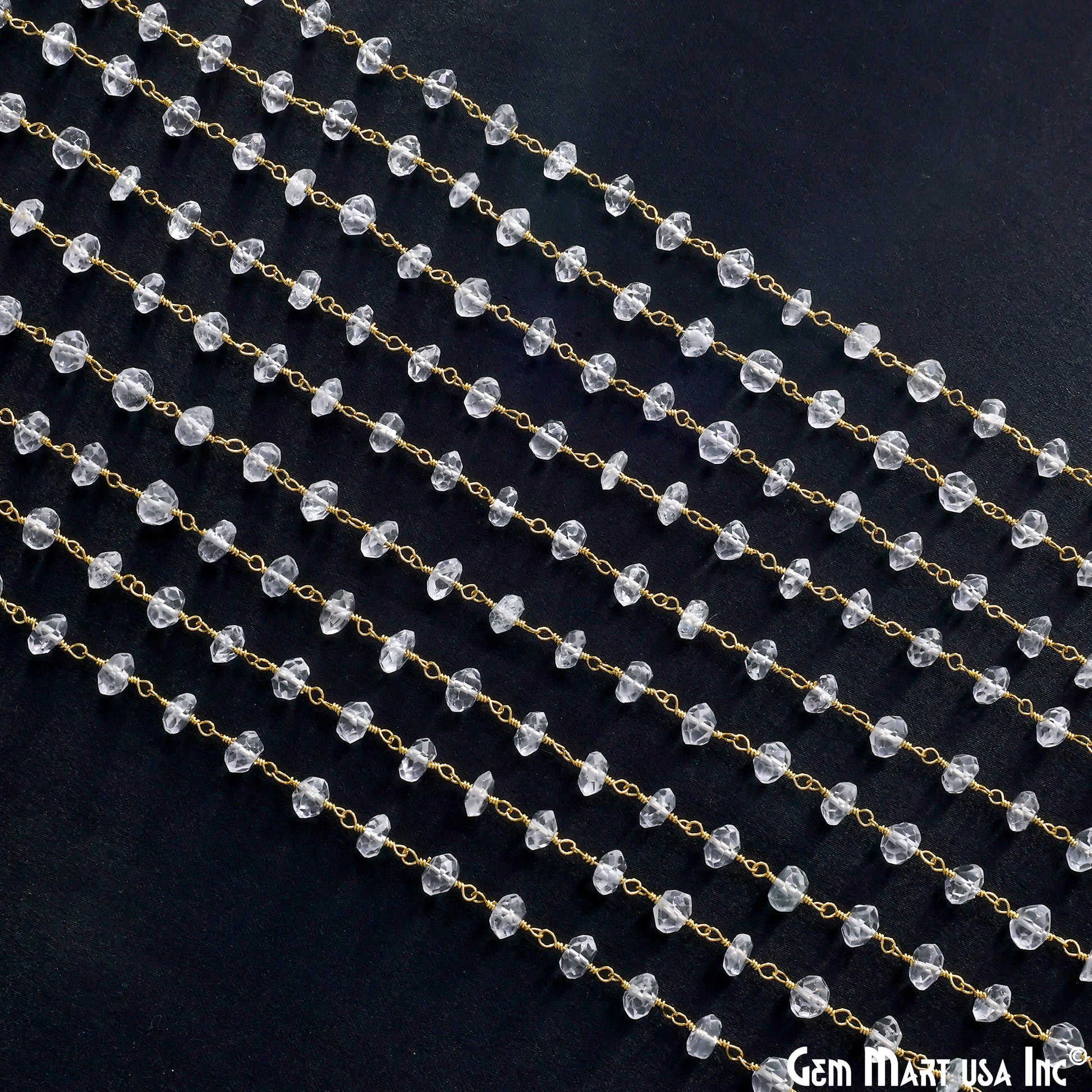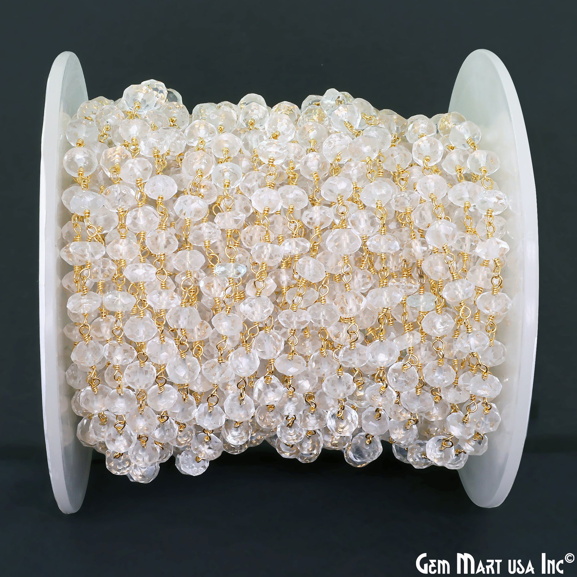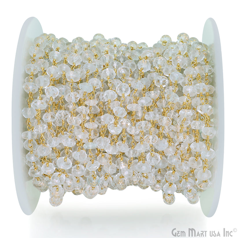 White Topaz Faceted 5-6mm Gold Wire Wrapped Beads Rosary Chain