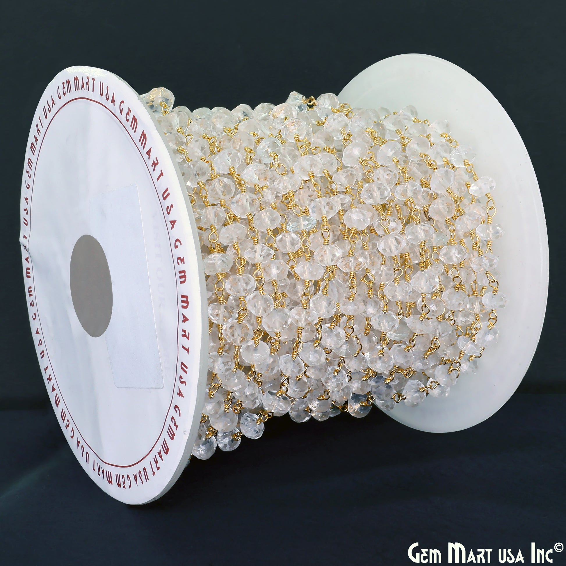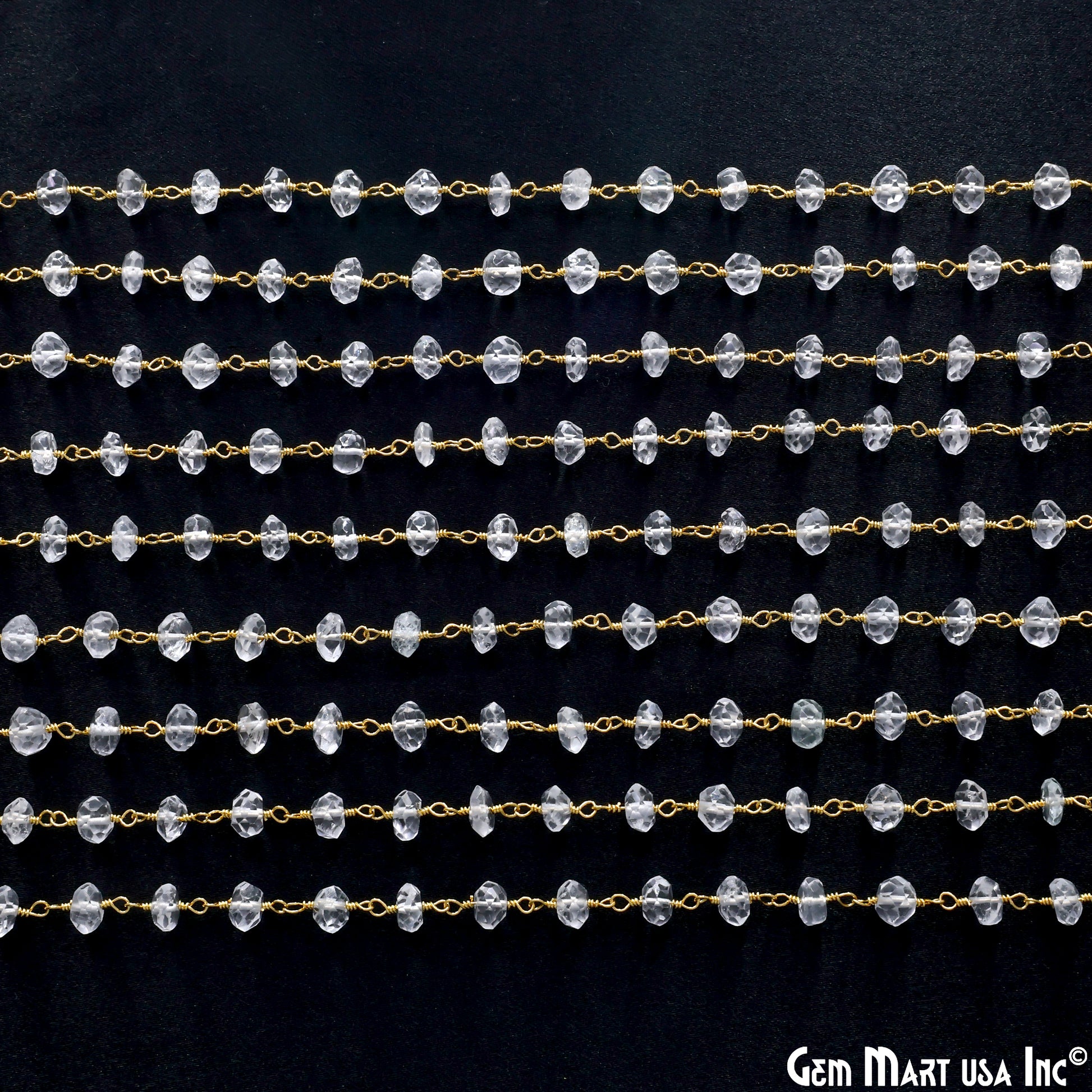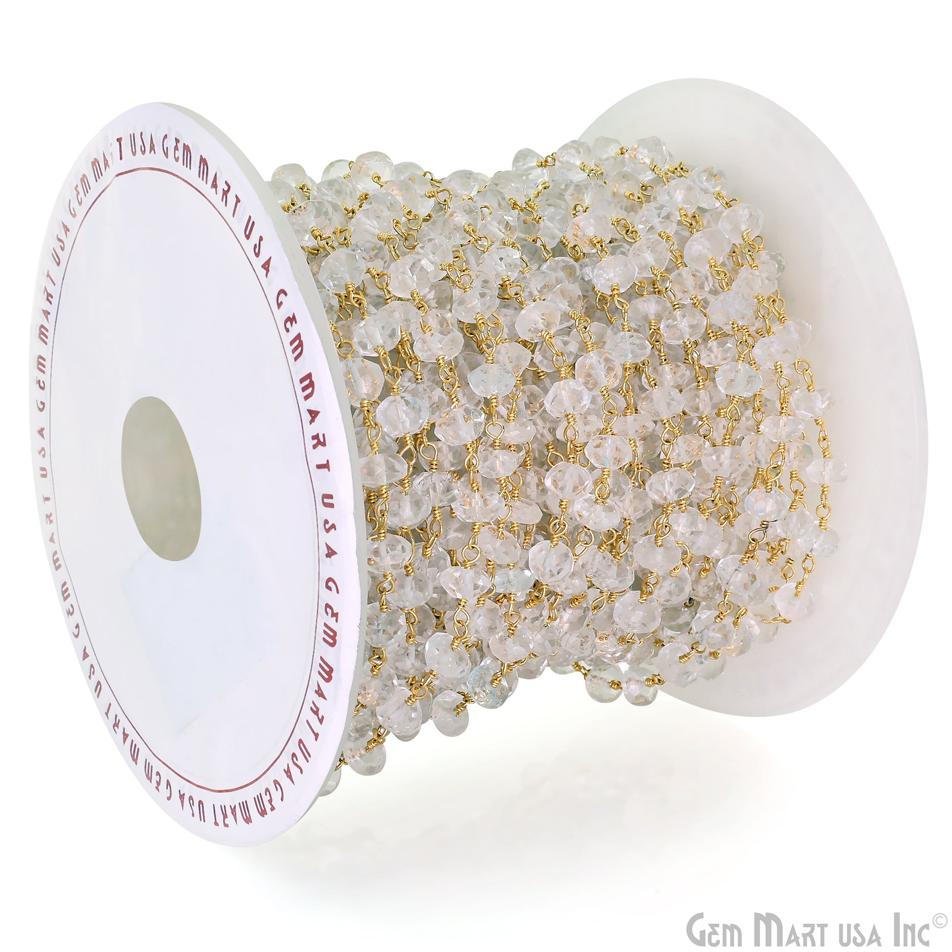 White Topaz Faceted 5-6mm Gold Wire Wrapped Beads Rosary Chain