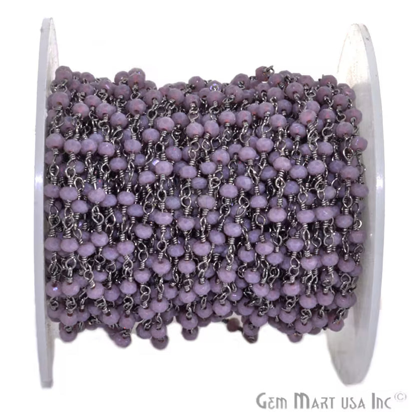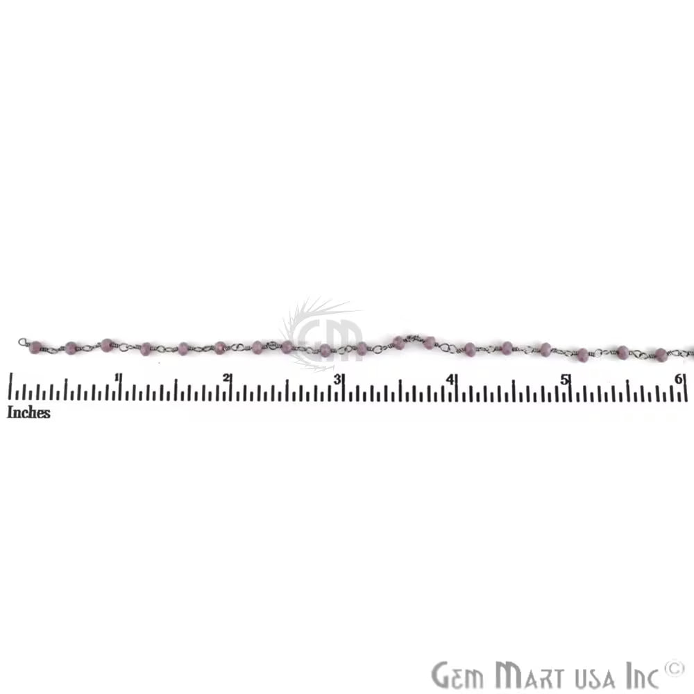 Amethyst Chalcedony 3-3.5mm Black Plated Beaded Wire Wrapped Rosary Chain