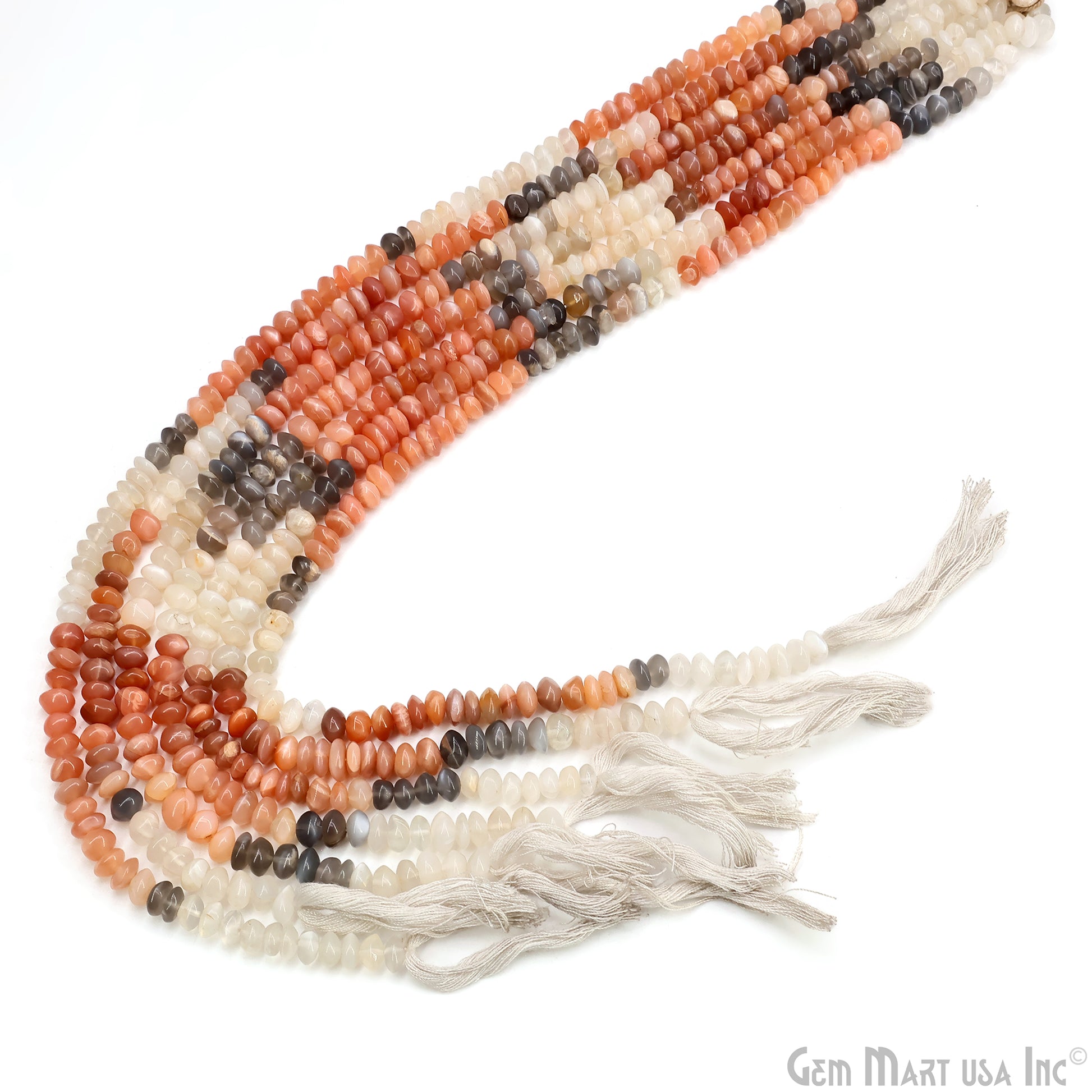 Multi Moonstone Smooth Round Drilled Beads 4-6mm Waist Beads, Rondelle Bead Strand 13 Inch