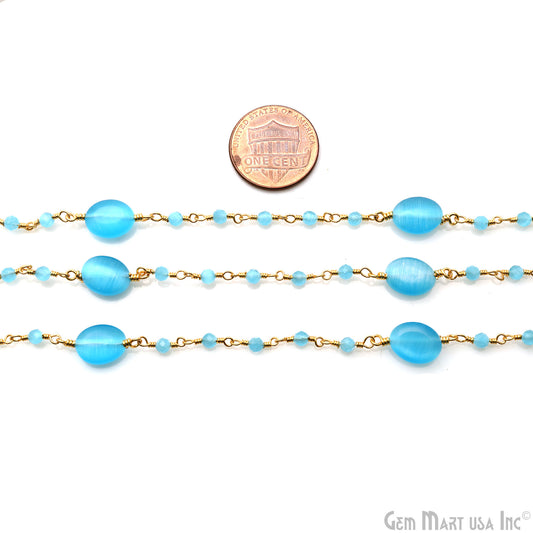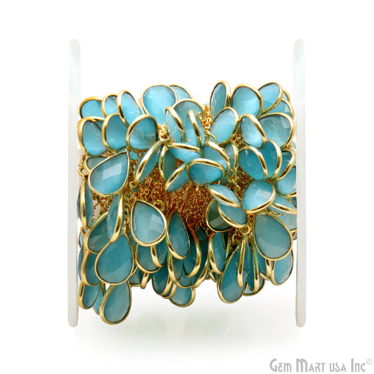 Blue Monalisa Pears Gold Bezel C...