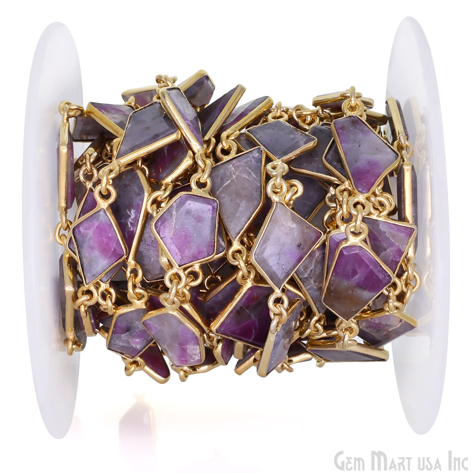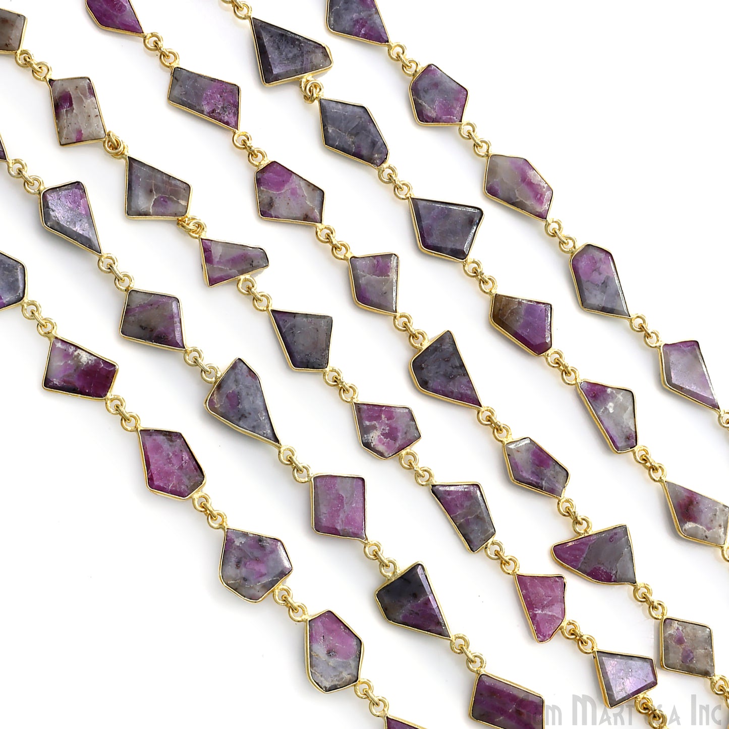 Ruby Ziopsite 10mm Faceted Free Form Gold Plated Bezel Connector Link Chain