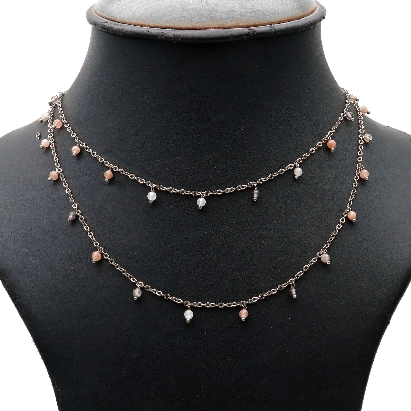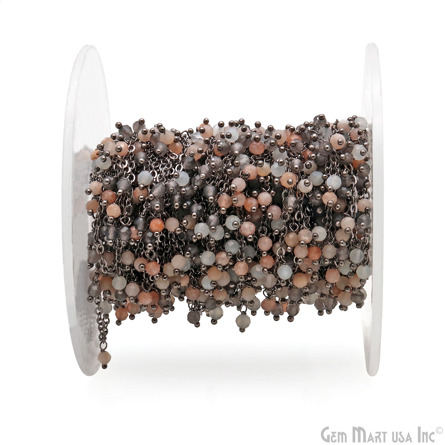Multi Stone Faceted Beads 3-4mm Oxidized Cluster Dangle Chain
