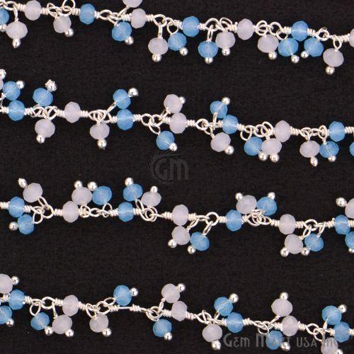 Sky Blue Cluster Beads Silver Pl...