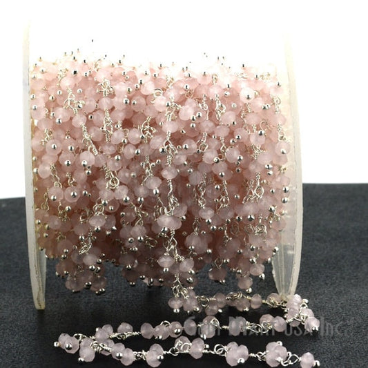 Rose Quartz Faceted Beads Silver...