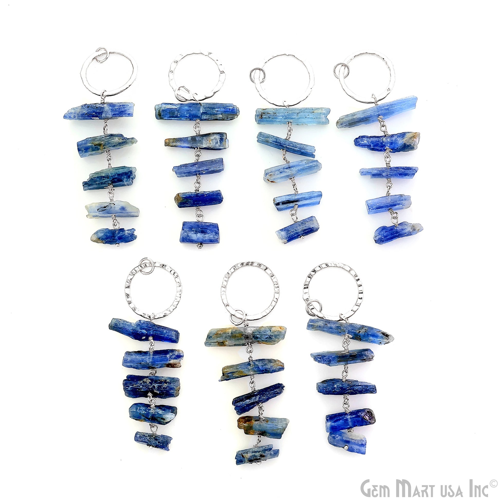 DIY Rough Gemstone With Round Silver Finding 67x26mm Dangle Connector