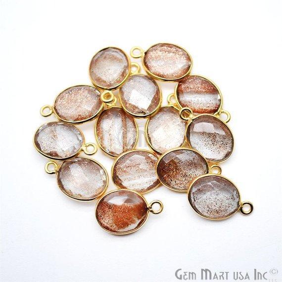 Oval 9x11mm Single Bail Gold Bezel Gemstone Connector