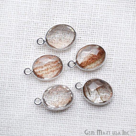 Oval 9x11mm Single Bail Silver Bezel Gemstone Connector (Pick Stone & Lot Size)