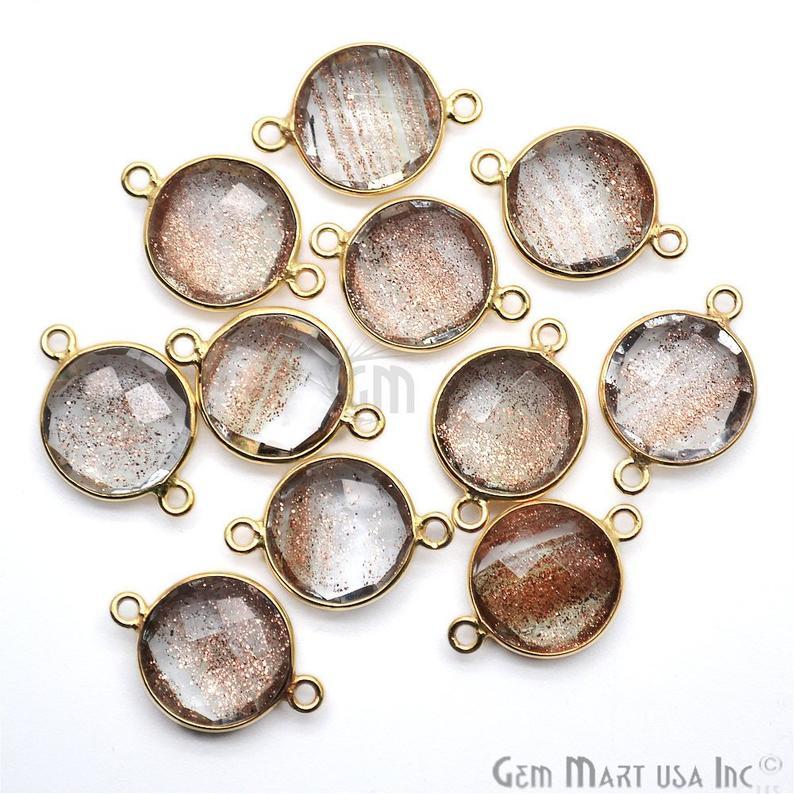 Stone: Pick your Gemstone Shape: Round Stone Size: 12mm Plating: Gold Plated Bail: Double QTY: Pick Your Lot Size Handmade Connector *Stone Type: Hydro (Opalite)
