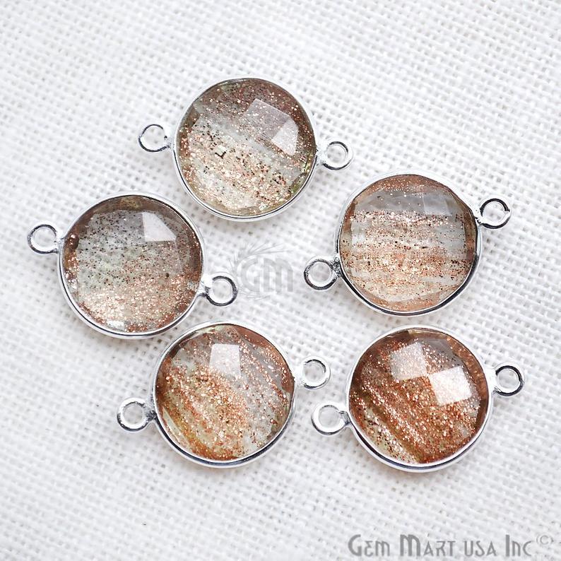 Round 12mm Double Bail Silver Bezel Gemstone Connector