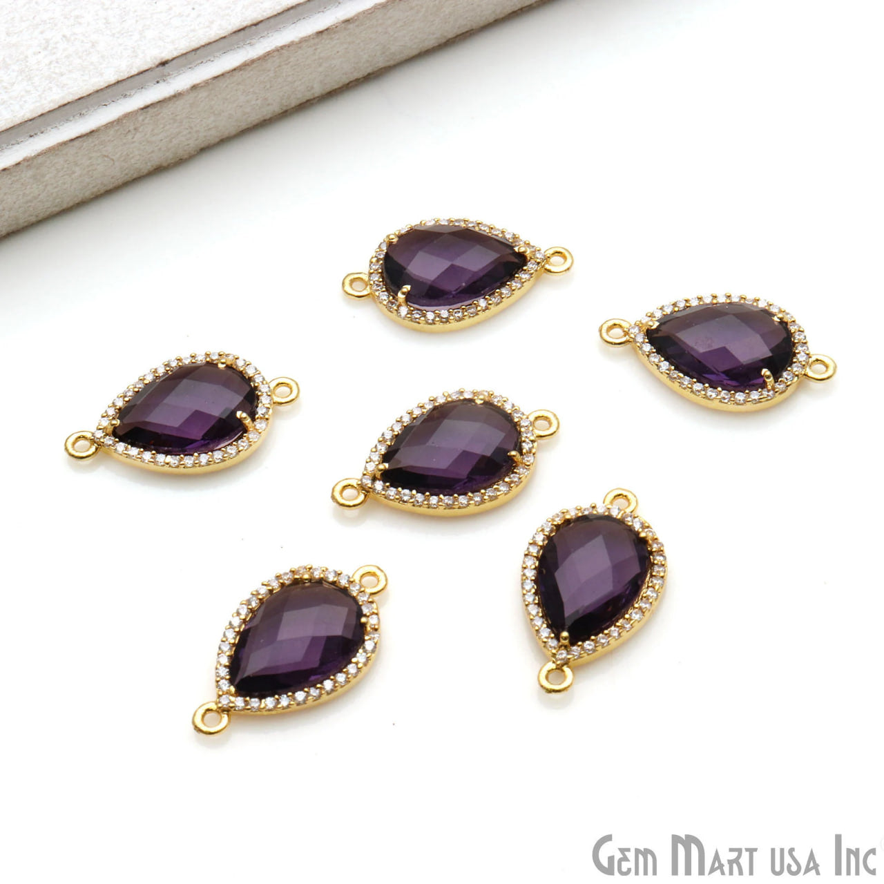 Pear 10x12mm Gold Prong Setting Cubic Zircon Pave Connector (Pick Stone)