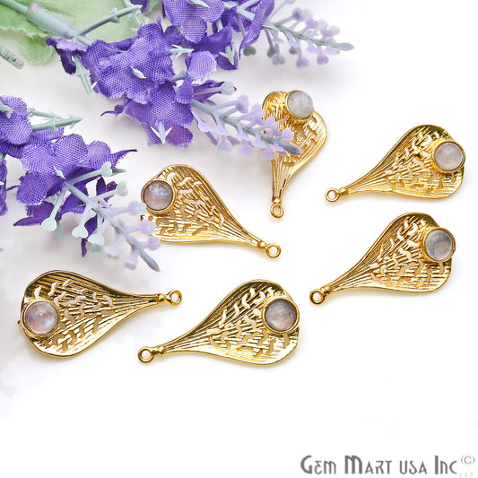 +2Gemstone 49x24mm Gold Leaf Findi...