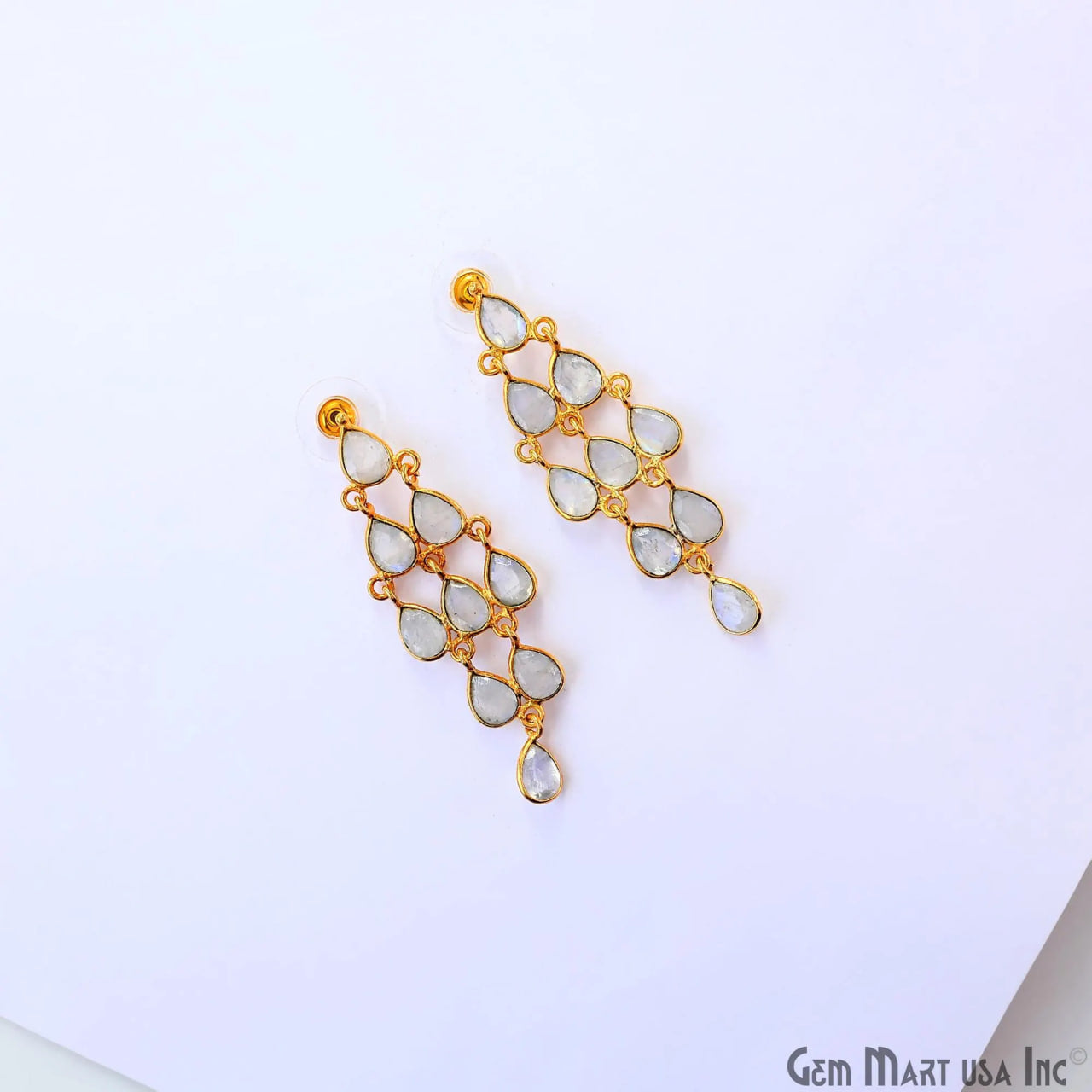 Rainbow Moonstone 54x36mm Teardrop Dangle Statement Jewelry Chandelier Earrings