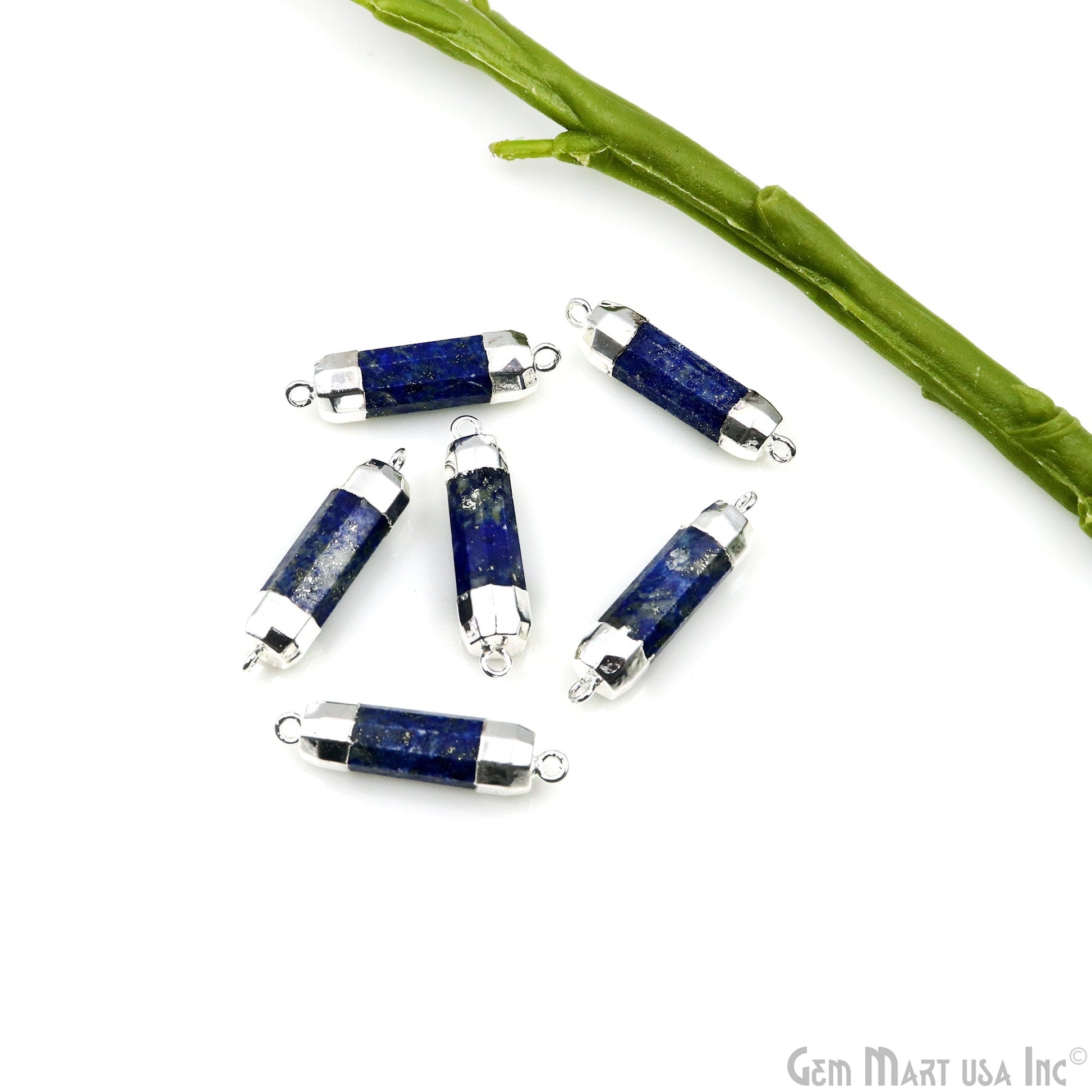 Double Point 33x8mm Silver Electroplated Gemstone Connector