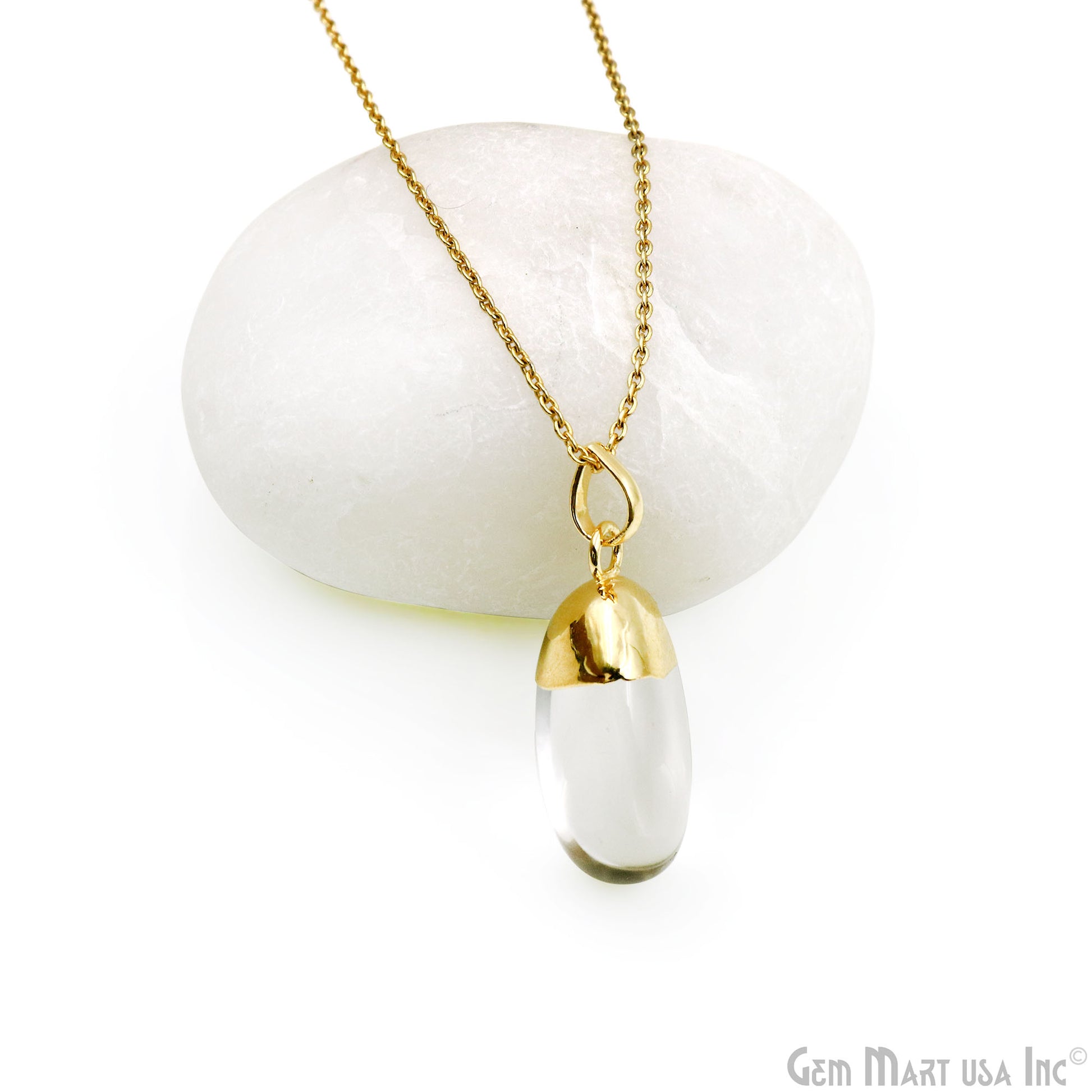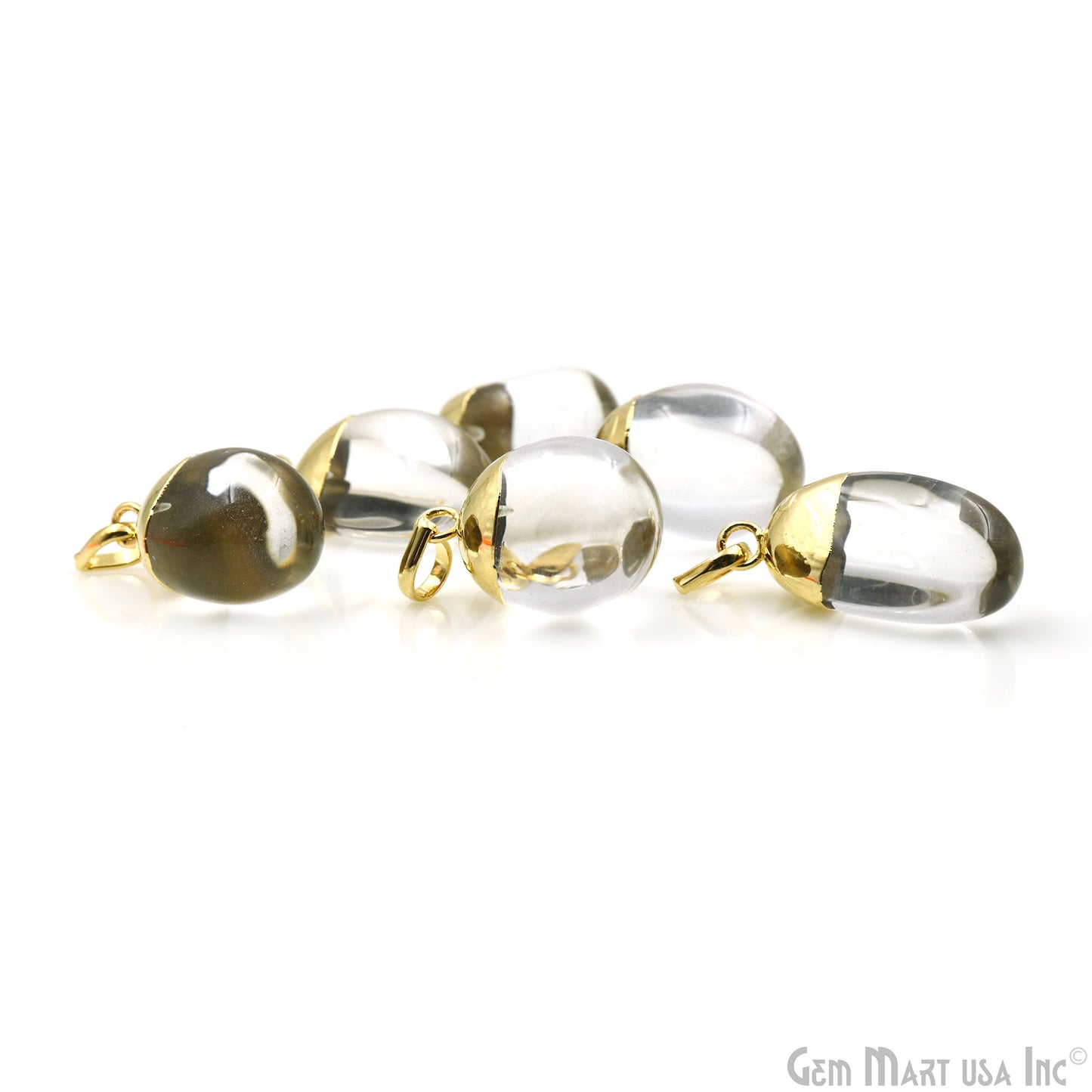 Crystal Tumbled 29x15mm Gold Electroplated Single Bail Gemstone Pendant