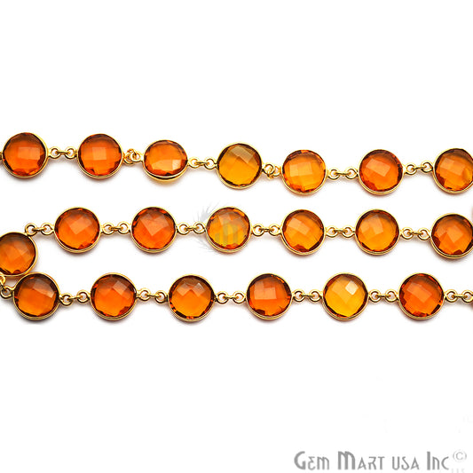 Citrine 12mm Round Gold Plated C...