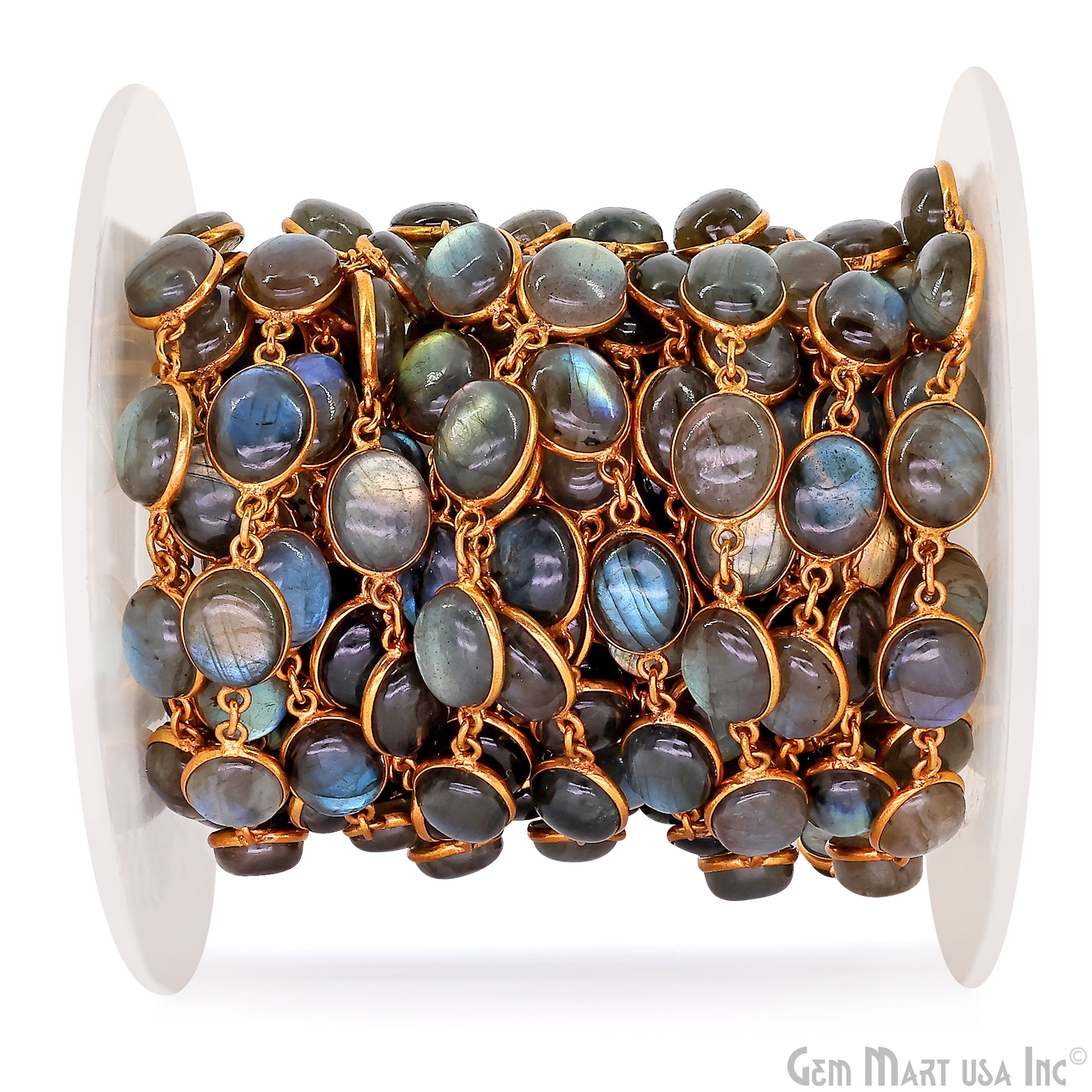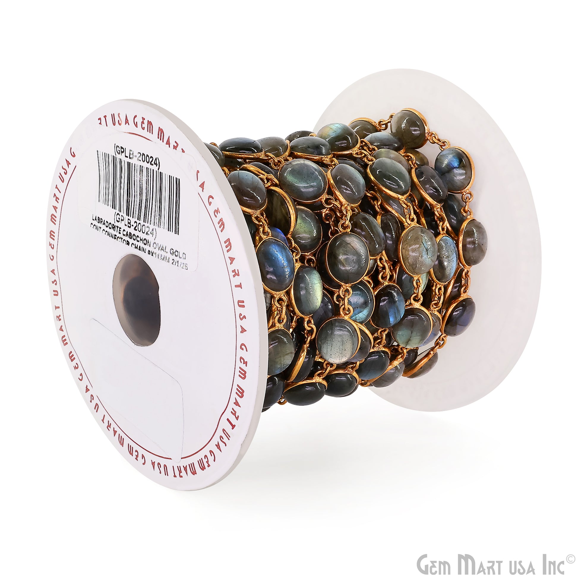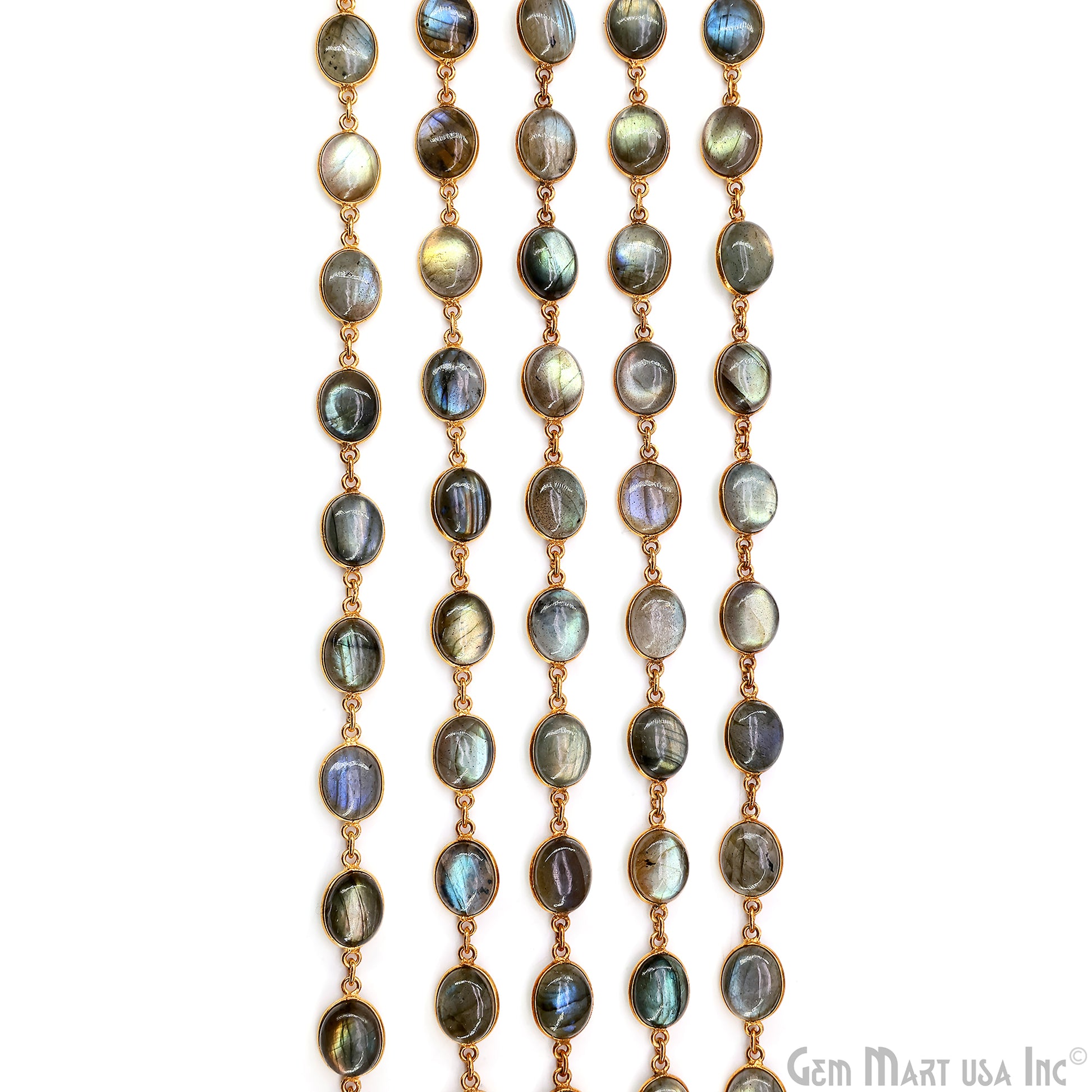 Labradorite Cabochon 9x11mm Oval Shape Gold Plated Bezel Continuous Connector Chain