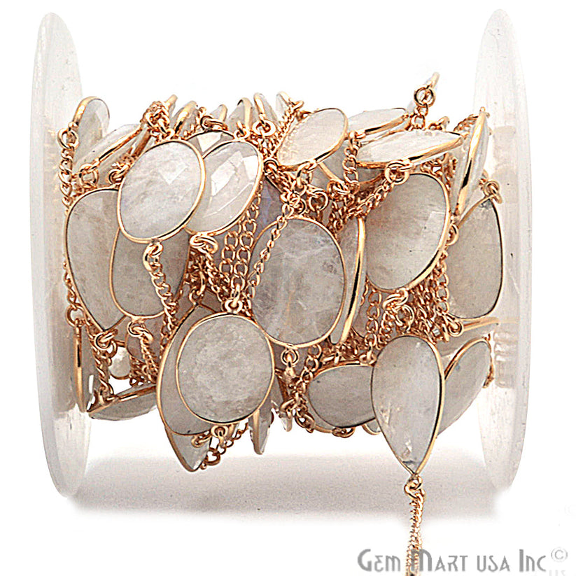 Rainbow, Gold Vermeil connector chain, In this Listing you will get 4 Rainbow Bezel connectors all Mix shapes round, pears, cushion, heart, octagon, oval, linked with gold plated chain. The length of the chain with the connectors is sold by feet, The finished connectors measure about 15mmup (Appx.).