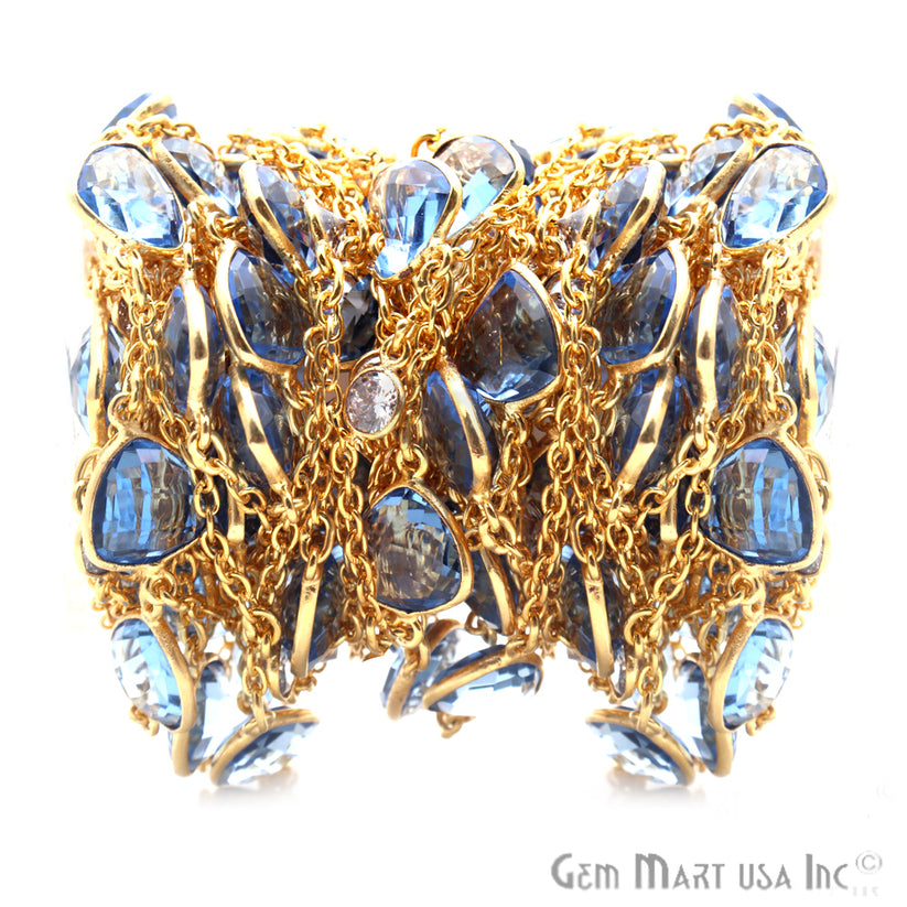 Tanzanite & Crystal 10mm Gold Plated Bezel Link Connector Chain