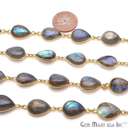 Labradorite 12x15mm Pear Gold Pl...