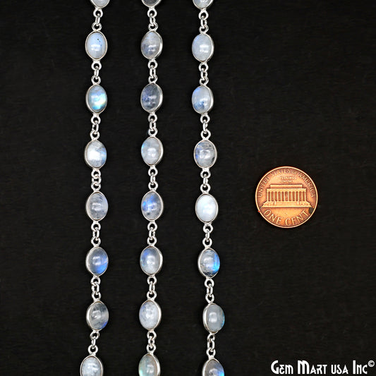 Rainbow Moonstone 6x8mm Oval Sil...