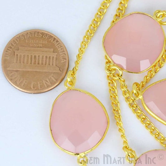 Rose Chalcedony 15mm Gold Plated...